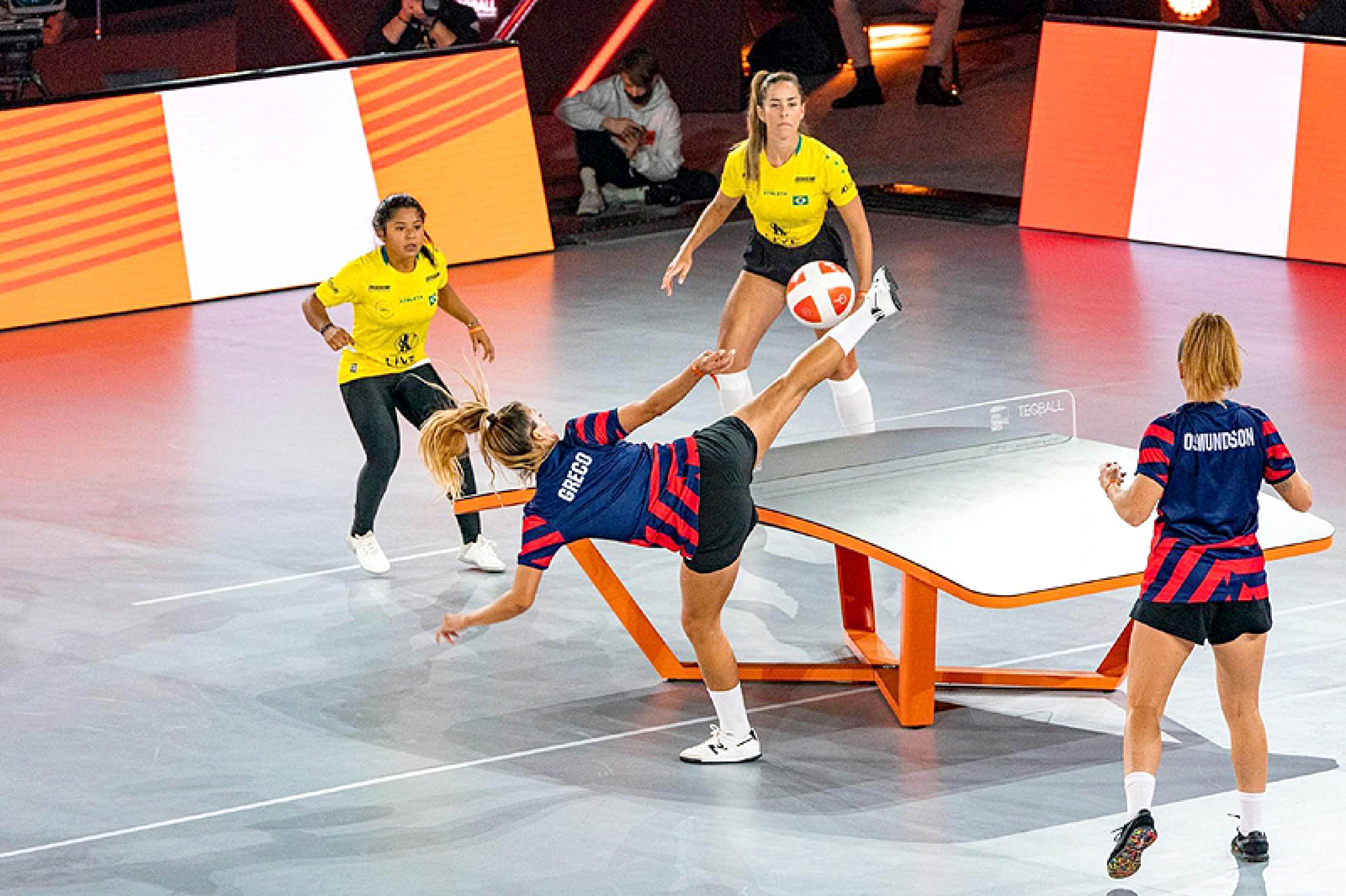 Futmesa. Isso já é mais difícil de engolir. Se você não conhece, sorte sua, mas vamos lá, estou aqui para explicar as coisas boas e ruins do mundo. Imagine uma mesa que tem mais ou menos o tamanho de uma mesa de pingue-pongue, só que encurvada nas extremidades. Tem uma redinha no meio. A bola usada é de futebol. Joga-se na modalidade individual ou em duplas. Os jogadores podem usar todas as partes do corpo, menos mãos e braços. Lembra muito o futevôlei, só que a coisa rola numa mesinha ridícula, com uma bola enorme. Parece jogo dos sete erros. O que fazer para criar algo verdadeiramente grotesco? Quem teve a ideia deve ter sido um morador entediado de apartamento.