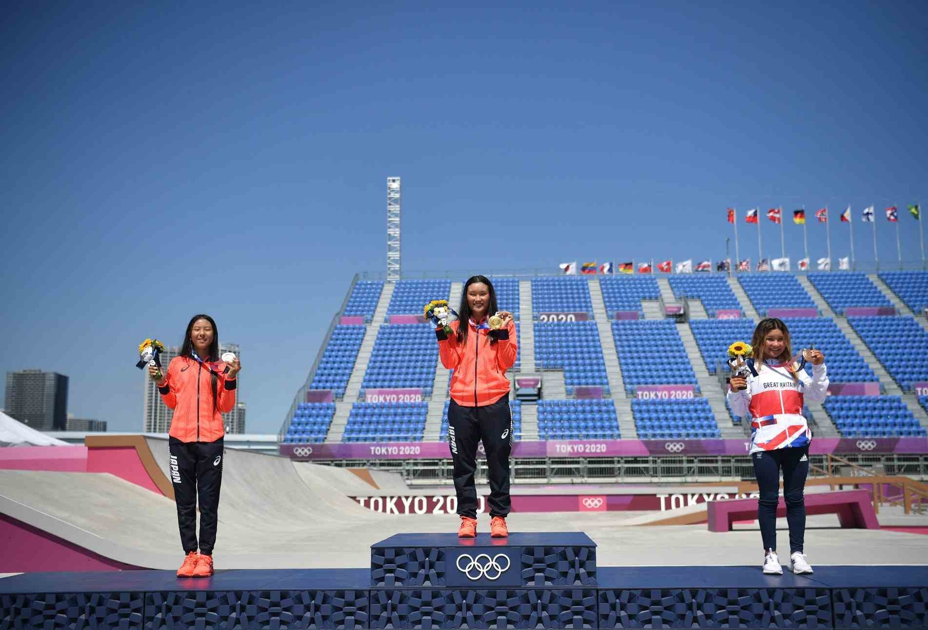 Favorita na prova, Sky Brown teve os holofotes da pista montada na Arena de Ariake voltados para si. Tendo se profissionalizado aos 10 anos, a jovem faturou a medalha de bronze com exatos 13 anos e três semanas. Anteriormente, a britânica já havia conquistado o primeiro lugar na edição deste ano do X Games - um dos principais eventos de esportes radicais do mundo.