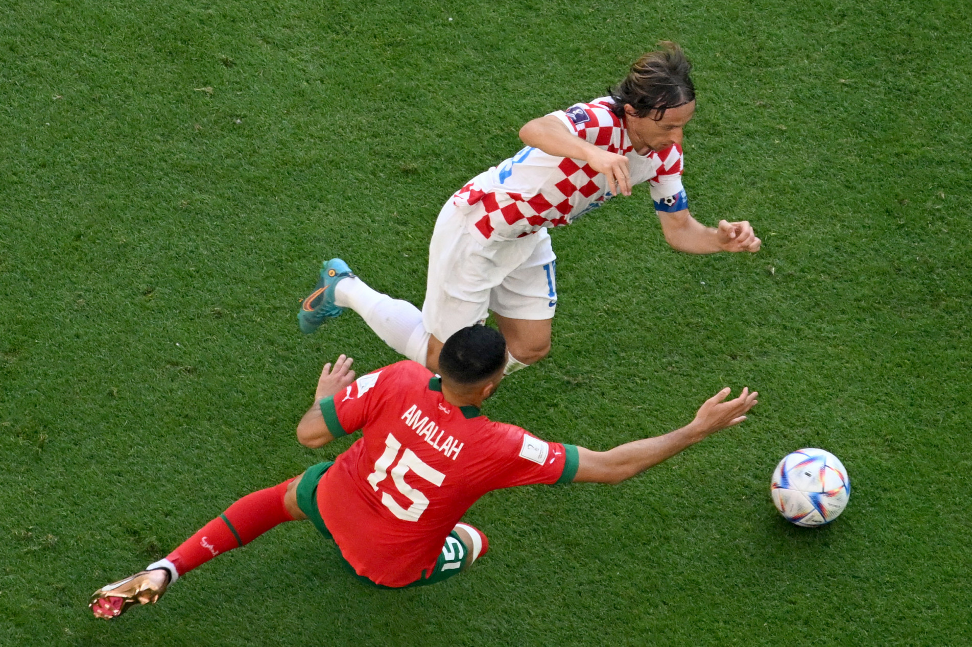 Ao mesmo tempo, a boa postura defensiva de Marrocos segurava os ataques da Croácia, que teve sua última chance aos 36, quando Modric levantou a bola na área para a cabeçada de Josko Gvardiol.