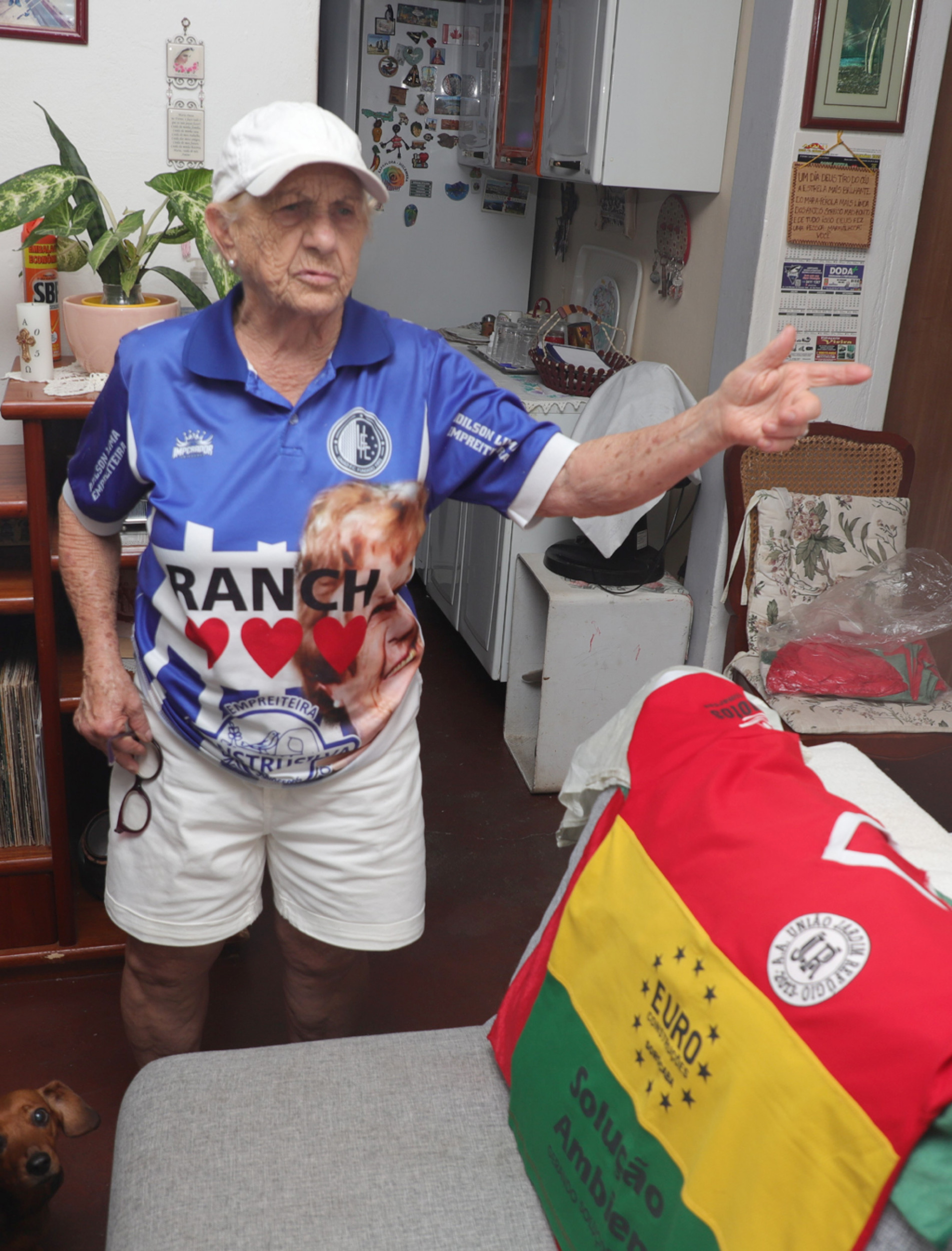 Mesmo após enfrentar um grave problema no nervo ciático — a deixou um ano e meio de cama —, Alayde não desistiu. Voltou, montou o time de novo e continua firme: “Mais um ano, estou em pé, graças a Deus”.