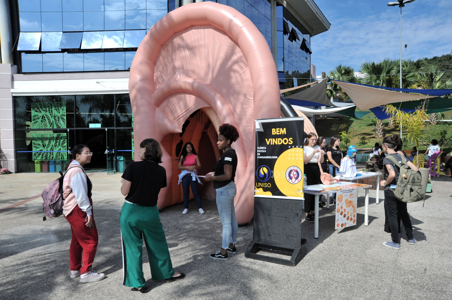 O curso de fonoaudiologia da Universidade de Sorocaba (Uniso) levou, pela primeira vez, à Cidade Universitária, uma orelha gigante que pode ser visitada até esta quinta-feira (4). Exposta desde terça-feira (2), a atração faz parte da programação pelo Dia Internacional de Conscientização sobre o Ruído, celebrado no dia 26 de abril. A ideia do projeto é da professora e fonoaudióloga Maura Laureano.