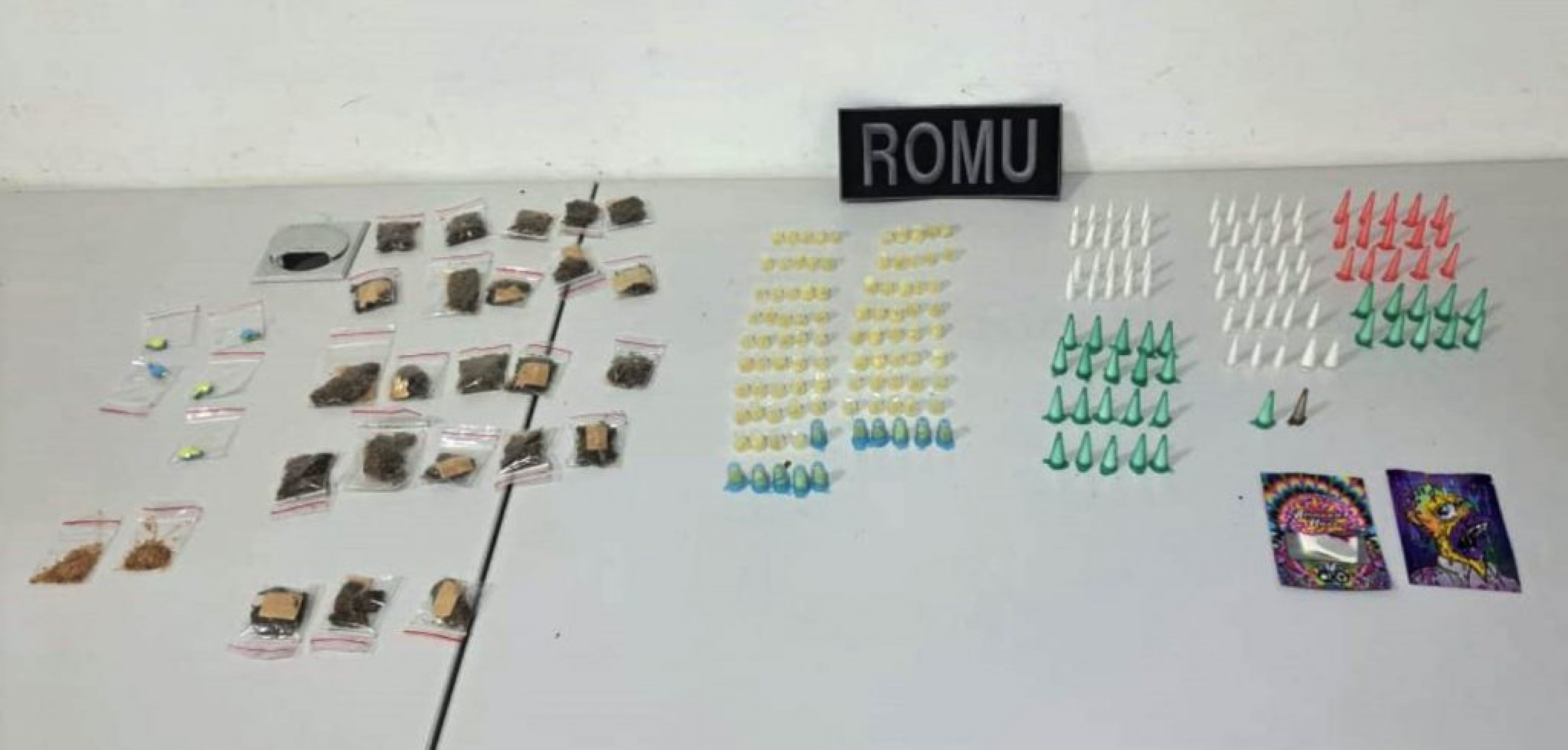 Dentro da sacola havia 97 porções de cocaína, 95 de crack, 23 de maconha, duas de K9 e cinco de ecstasy. Os entorpecentes foram recolhidos e apresentados no Plantão da Polícia Civil para registro da ocorrência, além da perícia no material.