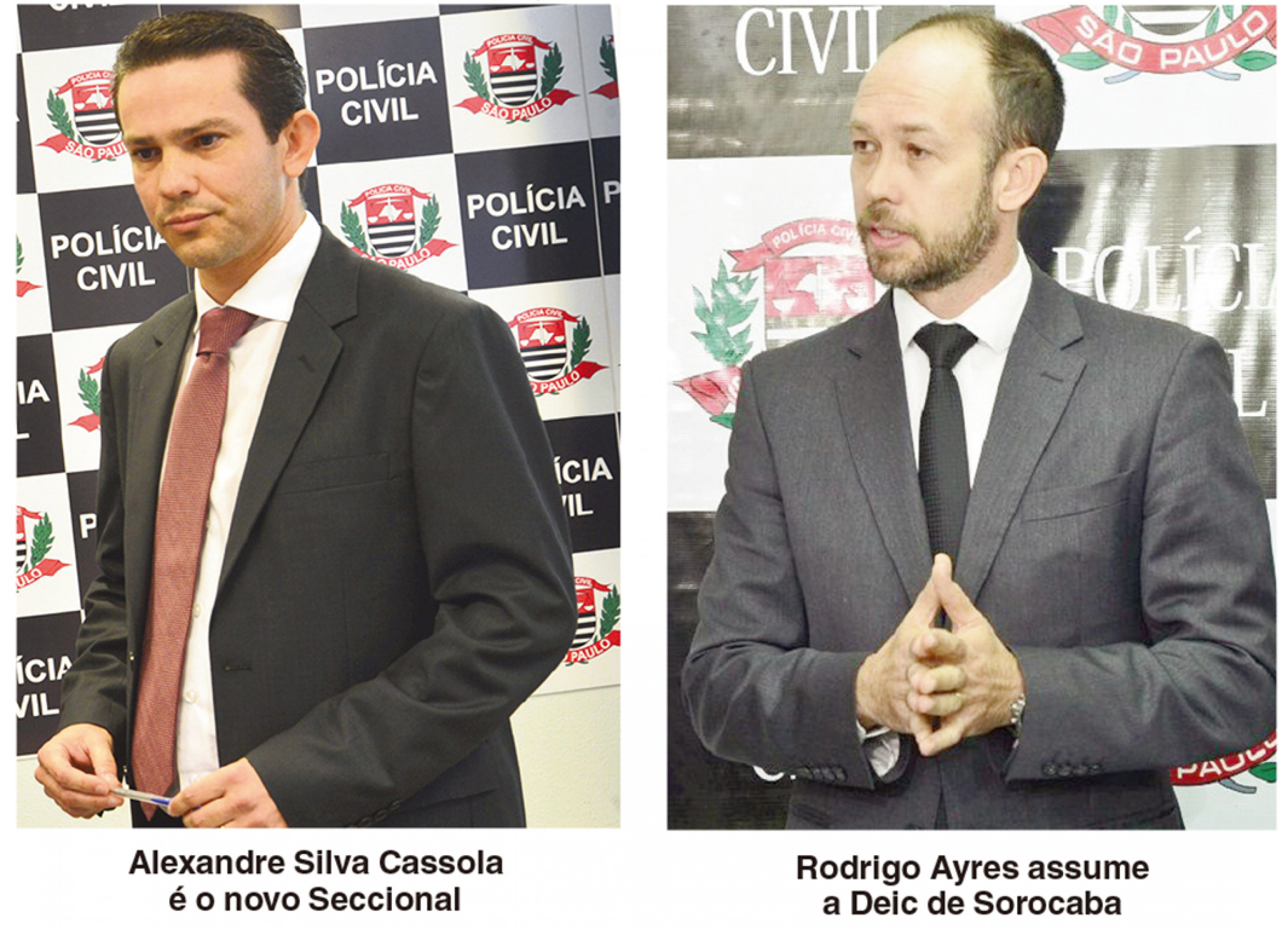 A Polícia Civil de Sorocaba tem novo delegado Seccional, Alexandre Silva Cassola — que sai da Divisão Especializada de Investigações Criminais (Deic) de Sorocaba — e novo delegado para a Deic, Rodrigo Ayres — que ainda mantém as funções de delegado divisionário do Deinter -7 e dirigente da Unidade de Ensino e Pesquisa. A Secretaria de Segurança Pública (SSP) informa em nota que “conforme publicado no Diário Oficial do Estado (DOE), a partir de 16 de abril (ontem), Alexandre Silva Cassola deixa o cargo de delegado divisionário da Deic de Sorocaba e assume a função de delegado Seccional. Com sua saída, Rodrigo Ayres assume o cargo de delegado divisionário da Deic. O delegado José Humberto Urban Filho permanece atuando no Departamento”, conclui a nota.