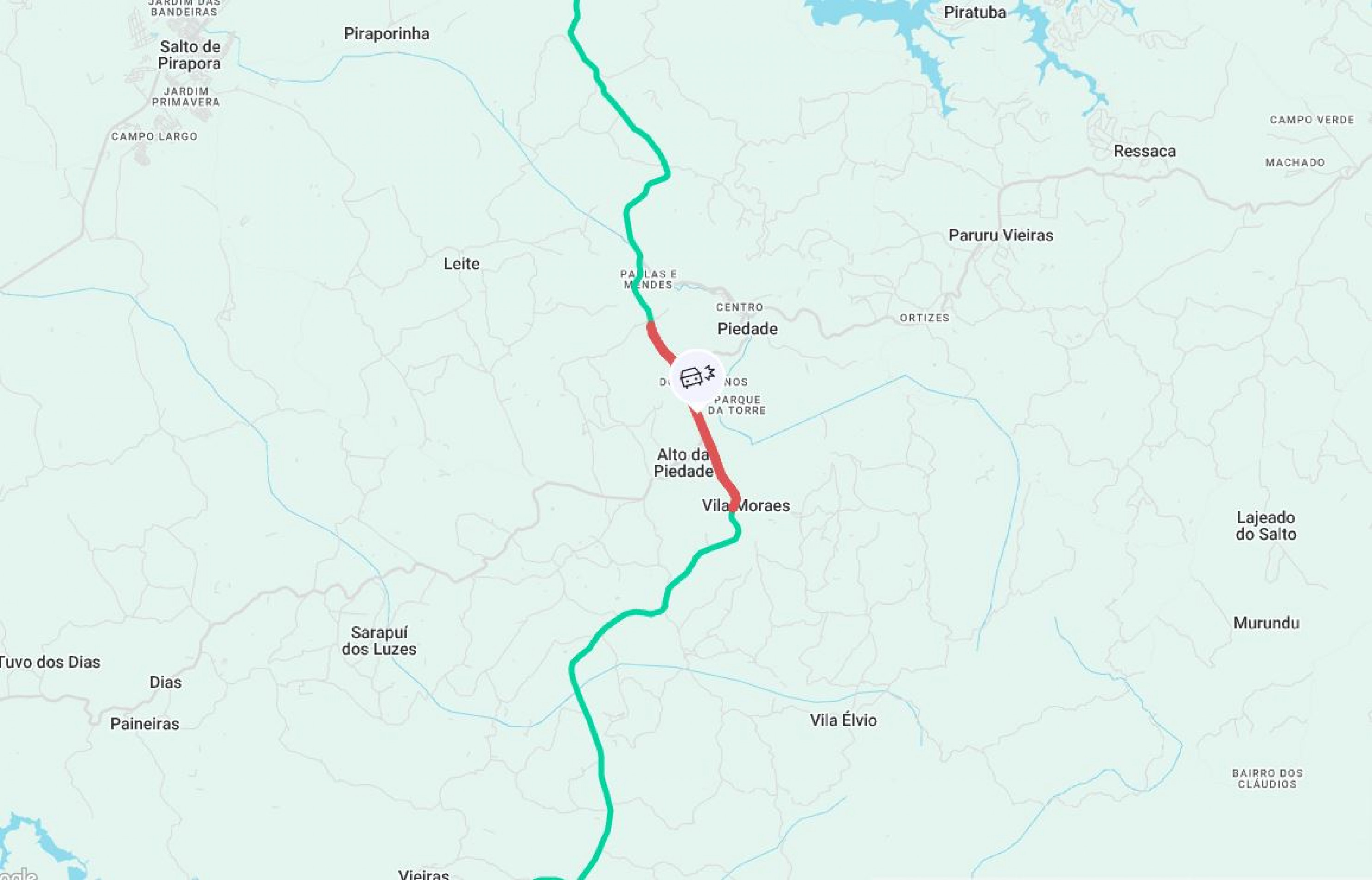 Por volta das 18h35, também na SP-079, em Piedade, outra batida. Conforme a CCR Sorocabana, na altura do quilômetro 133 um carro e uma moto bateram. Não há informações de vítimas e a dinâmica do acidente.