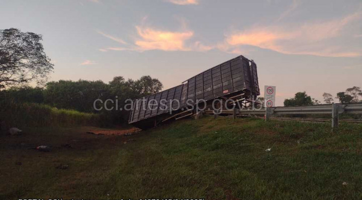 Segundo a Agência de Transporte do Estado de São Paulo (Artesp), a carreta trafegava pela rodovia na faixa 1, no sentido norte, quando, por motivos ainda a serem esclarecidos, o motorista perdeu o controle da direção e colidiu contra a defensa metálica. O veículo ficou parcialmente sobre a faixa 1 e o acostamento. Todas as faixas e o acostamento estão interditados.