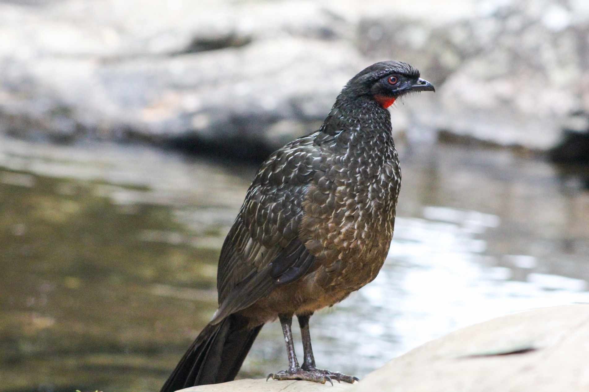 Será que você já viu esse grandalhão por aí? O jacuguaçu possui um porte que lembra uma galinha bem crescida e seu canto é um estardalhaço, uma gritaria que pode ser ouvida de longe na mata. Ele também é conhecido como jacuaçu. É uma ave de porte médio, que pode chegar a 75 centímetros e pesar um pouco mais de 1 kg.