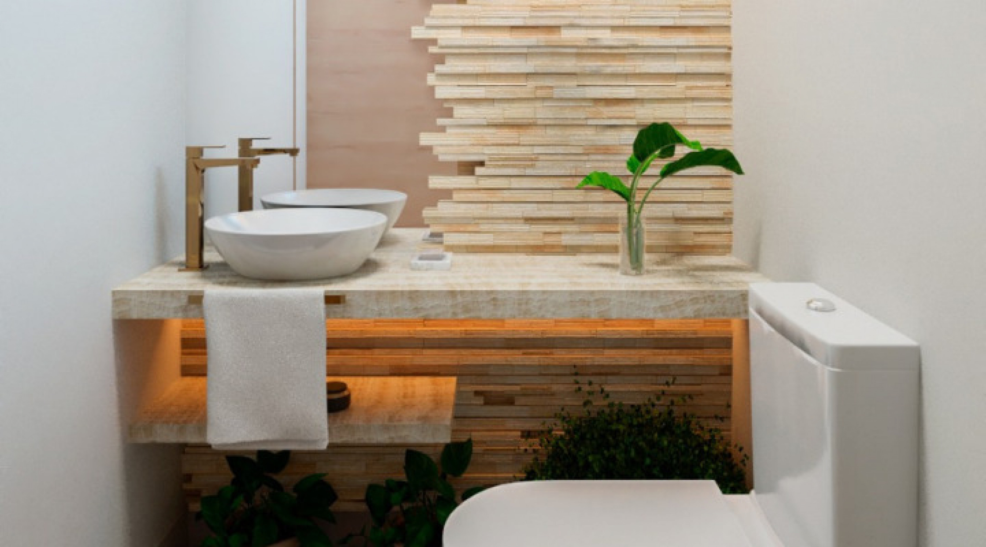 Quem apostou nessa proposta foi a empresária Elaine Cabral, de 39 anos, que decidiu transformar o lavabo e a área de lazer de seu apartamento. “Sim, sinto falta da natureza, adoro plantas e flores. Gostei de todos os ambientes, mas o lavabo é o mais especial”, conta. Na fachada e no espaço de convivência, ela optou pelo uso da pedra filete canjiquinha, reforçando o estilo rústico com elegância.