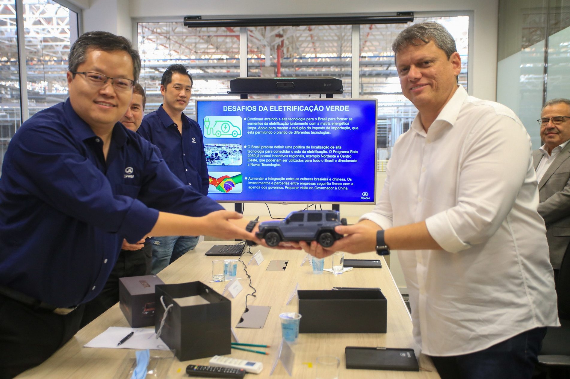 Durante sua visita pela linha de montagem, Tarcísio de Freitas foi apresentado às diferentes tecnologias que a GWM dispõe na China e poderão ser produzidas no Estado nos próximos anos, como veículos híbridos tradicionais, híbridos plug-ins, elétricos e movidos a hidrogênio.