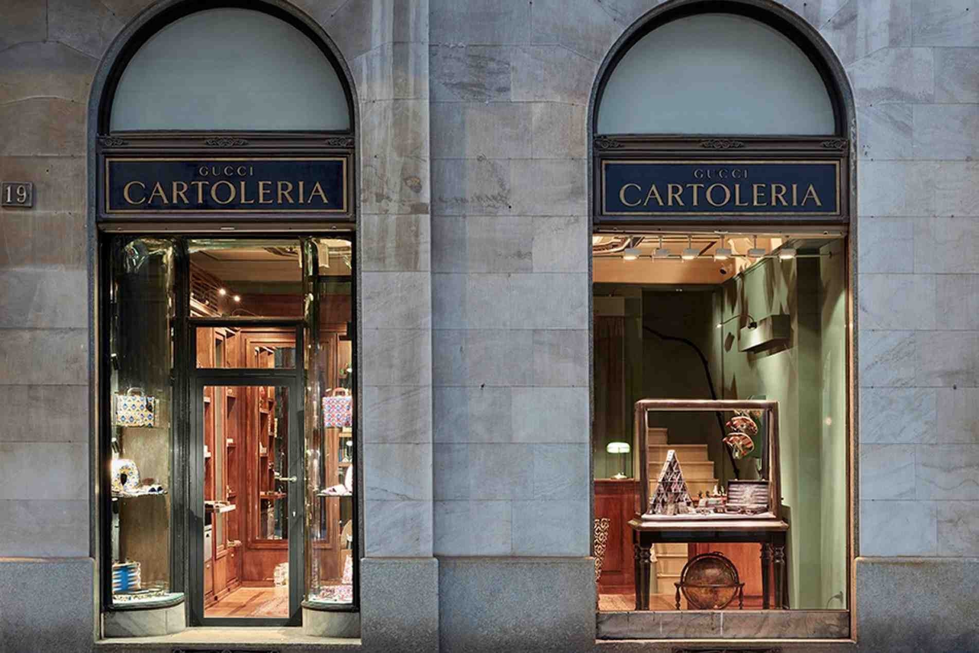 Seguindo a inspiração do “gabinete de curiosidades” que permeia toda a coleção Gucci Lifestyle, o Diretor Criativo Alessandro Michele concebeu a Gucci Cartoleria tanto como uma loja tradicional quanto como um refúgio encantado: em cada canto há um feitiço aguardando ser descoberto, transformando a loja em um lugar para ser examinado e explorado. Os visitantes podem se deparar com itens assombrados, cadernos voadores, jogos de xadrez que jogam sozinhos, inúmeras estantes de livros, micro apartamentos para ratos com móveis Gucci, entre outros encantos.