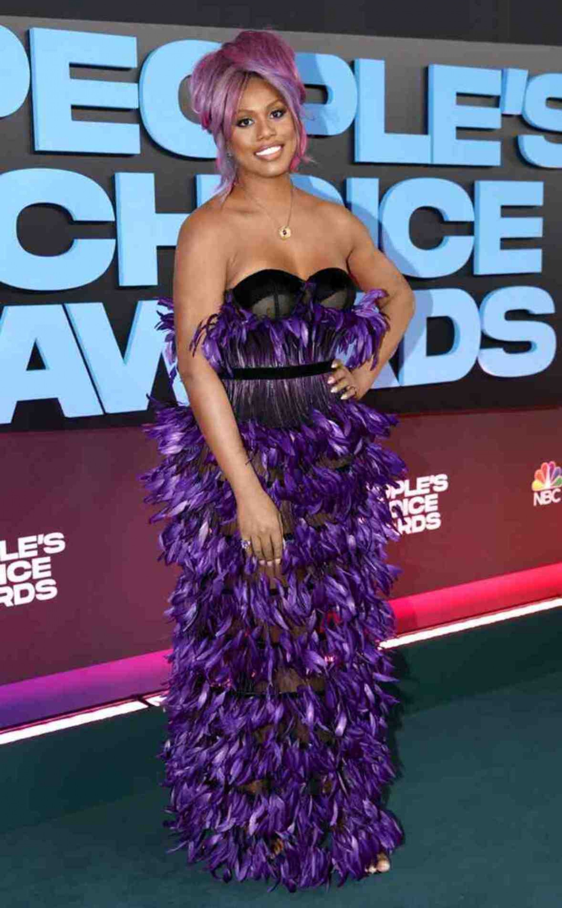 Laverne Cox, atriz e defensora dos direitos da comunidade LGBTQIA+, comandou a transmissão do tapete vermelho e compartilhou com o público os grandes looks da noite no Live From E!: People's Choice Awards 2021.