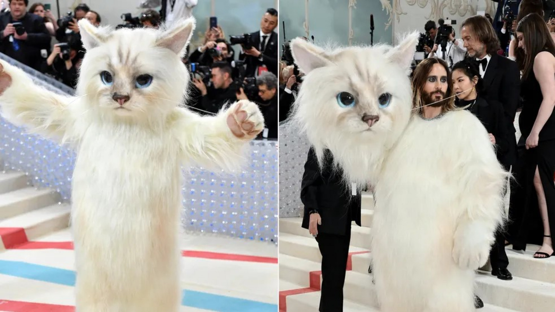Algumas situações engraçadas tomaram conta do evento... Os looks inspirados na gatinha Choupette, única herdeira da fortuna de Lagerfeld, foram febre no tapete vermelho. Jared Leto e Doja Cat literalmente se vestiram de gato.