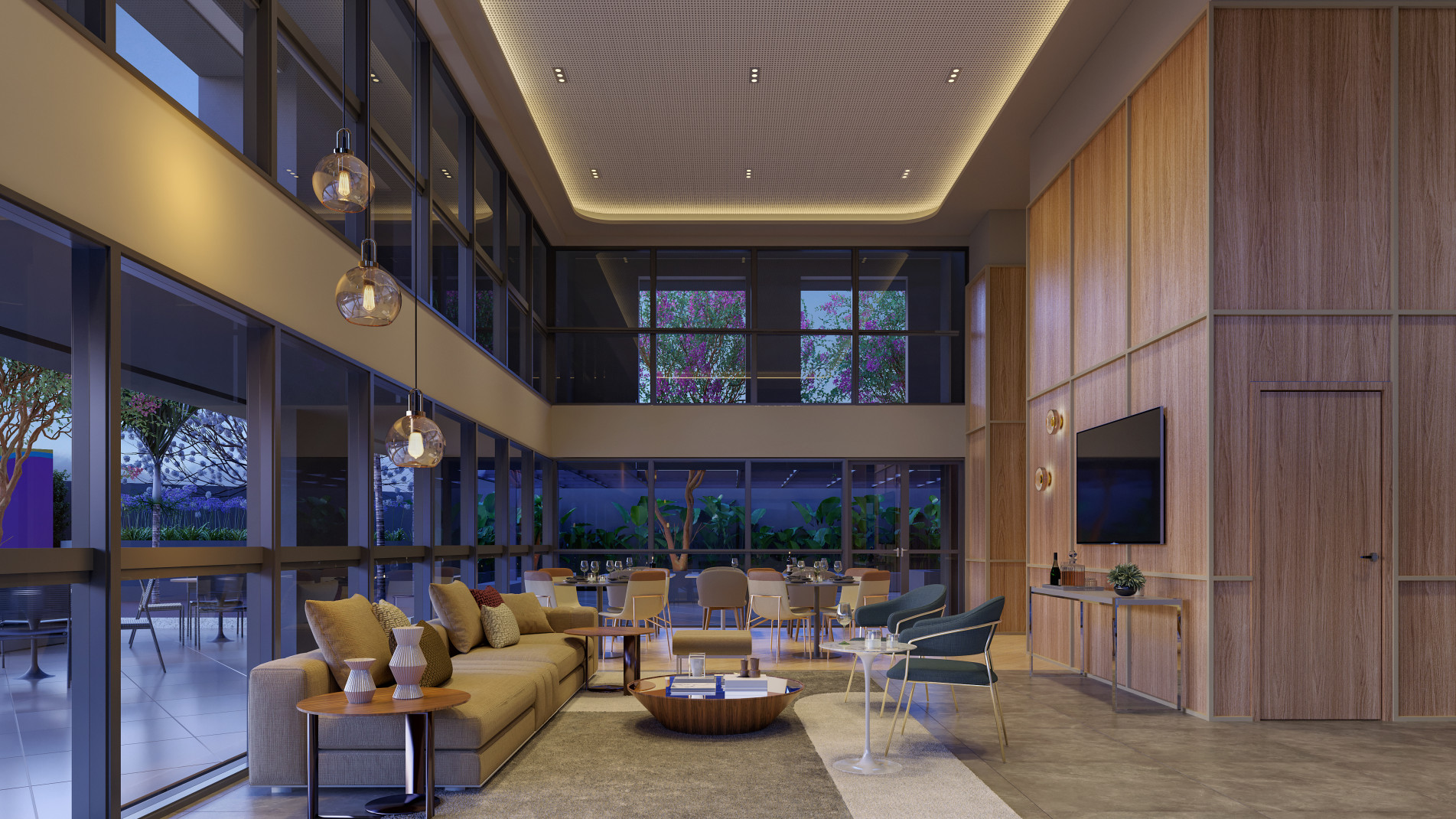 Iluminação natural e controle climático: as áreas comuns são projetadas para receber luz natural, contribuindo para a comodidade dos ocupantes. Além disso, os moradores terão autonomia para controlar o ambiente climático desses locais.