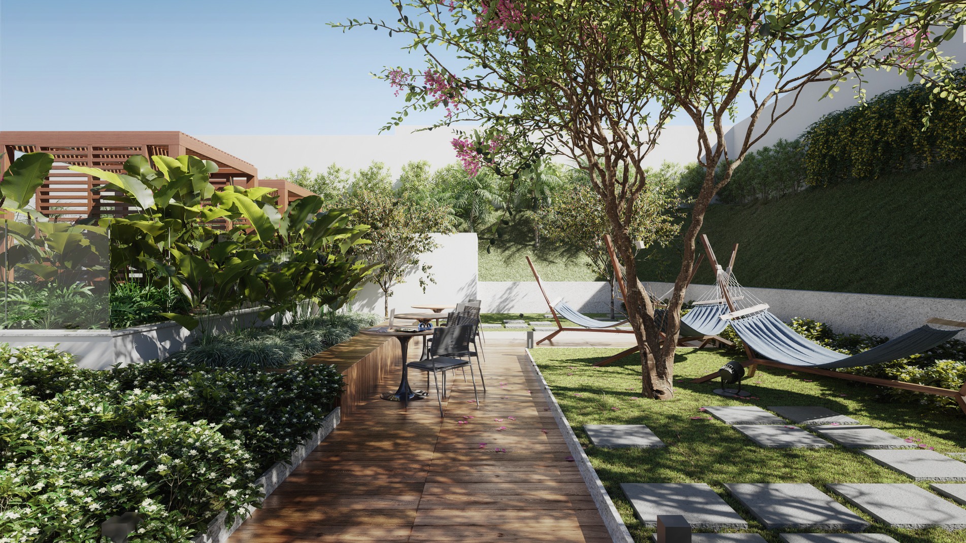 Inspirado nas vegetações presentes no bairro, o condomínio adota os nomes de espécies da região para suas torres e tem o seu conceito atrelado à natureza. A sustentabilidade tem destaque nas soluções inteligentes oferecidas pelo projeto arquitetônico, como a potencialização da iluminação natural, a ventilação cruzada, a priorização de materiais naturais e, claro, as escolhas feitas pelo paisagismo.