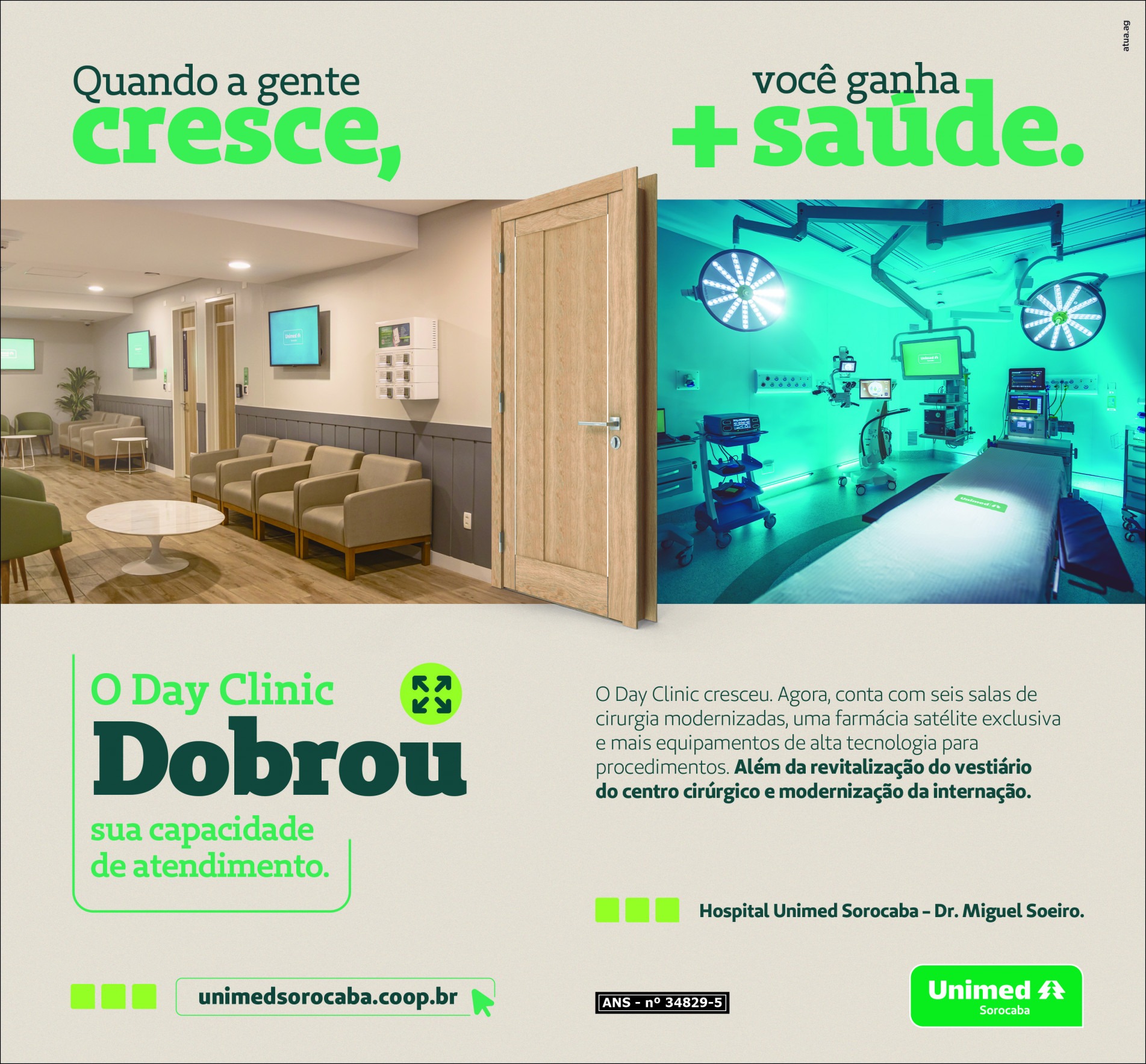 Segundo o diretor administrativo da Unimed Sorocaba, Edson Cumpian Paulossi Junior, os quartos receberam o mesmo layout e equipamentos dos 64 leitos entregues no final de 2023 e que fazem parte de um projeto macro de modernização e ampliação das unidades assistenciais da Unimed Sorocaba. Com a entrega destas obras, o Hospital Unimed Sorocaba - Dr. Miguel Soeiro dobrará a capacidade de operação no Day Clinic, além de aumentar esta capacidade em 33% no Centro Cirúrgico, 50% no Centro Obstétrico.