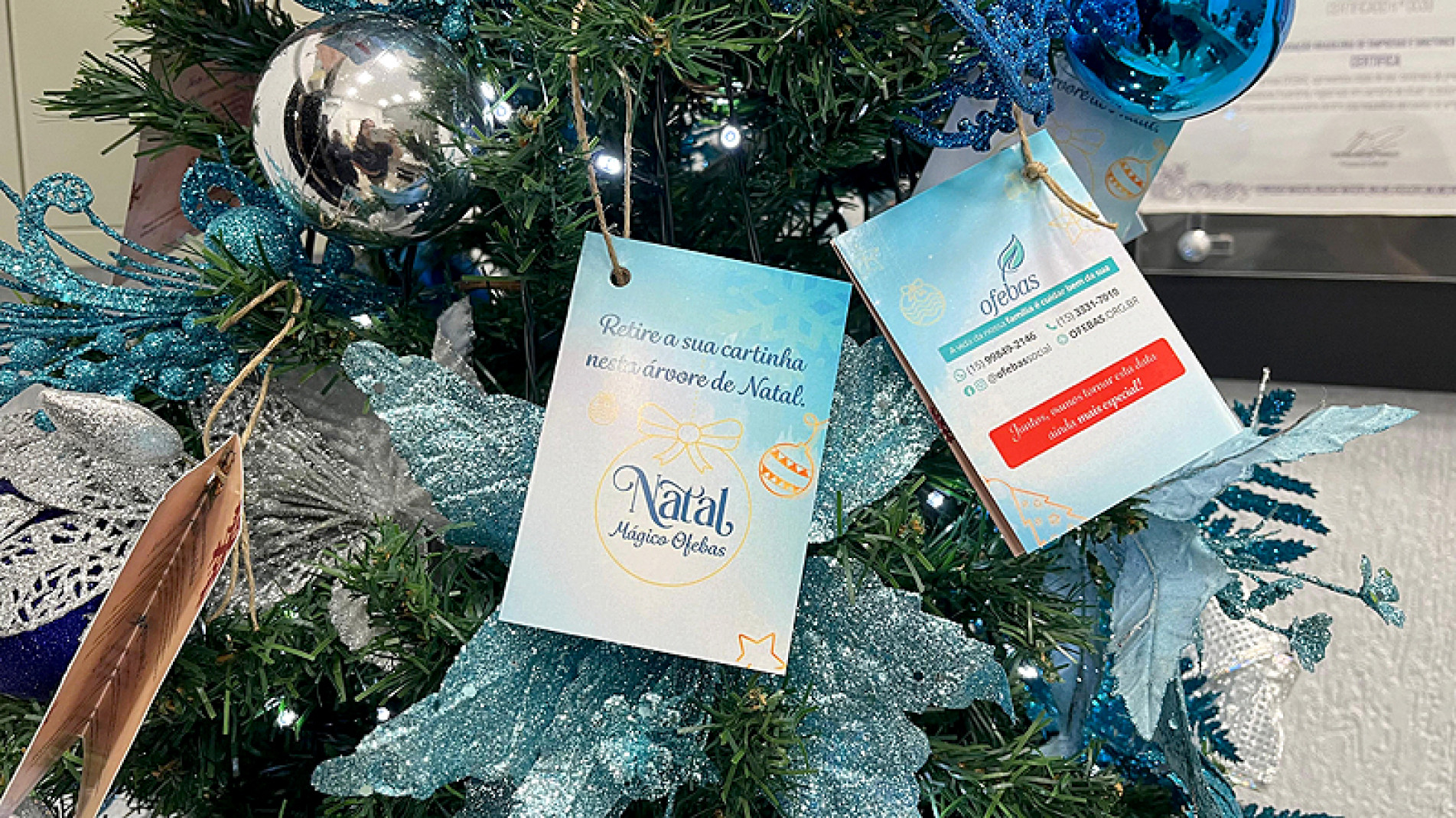 E como forma de finalizar 2024 no clima natalino, a Ofebas realizou pelo segundo ano consecutivo a ação de “adote uma carta”. Dessa vez, em prol dos assistidos do Lar São Vicente de Paulo. 95 cartinhas de idosos com sugestões de presentes foram penduradas na Árvore de Natal da unidade matriz, e qualquer pessoa que tivesse interesse podia participar. Os presentes vão ser entregues no dia 19, numa festa temática dos anos 60 para os assistidos, também organizada pela Ofebas.