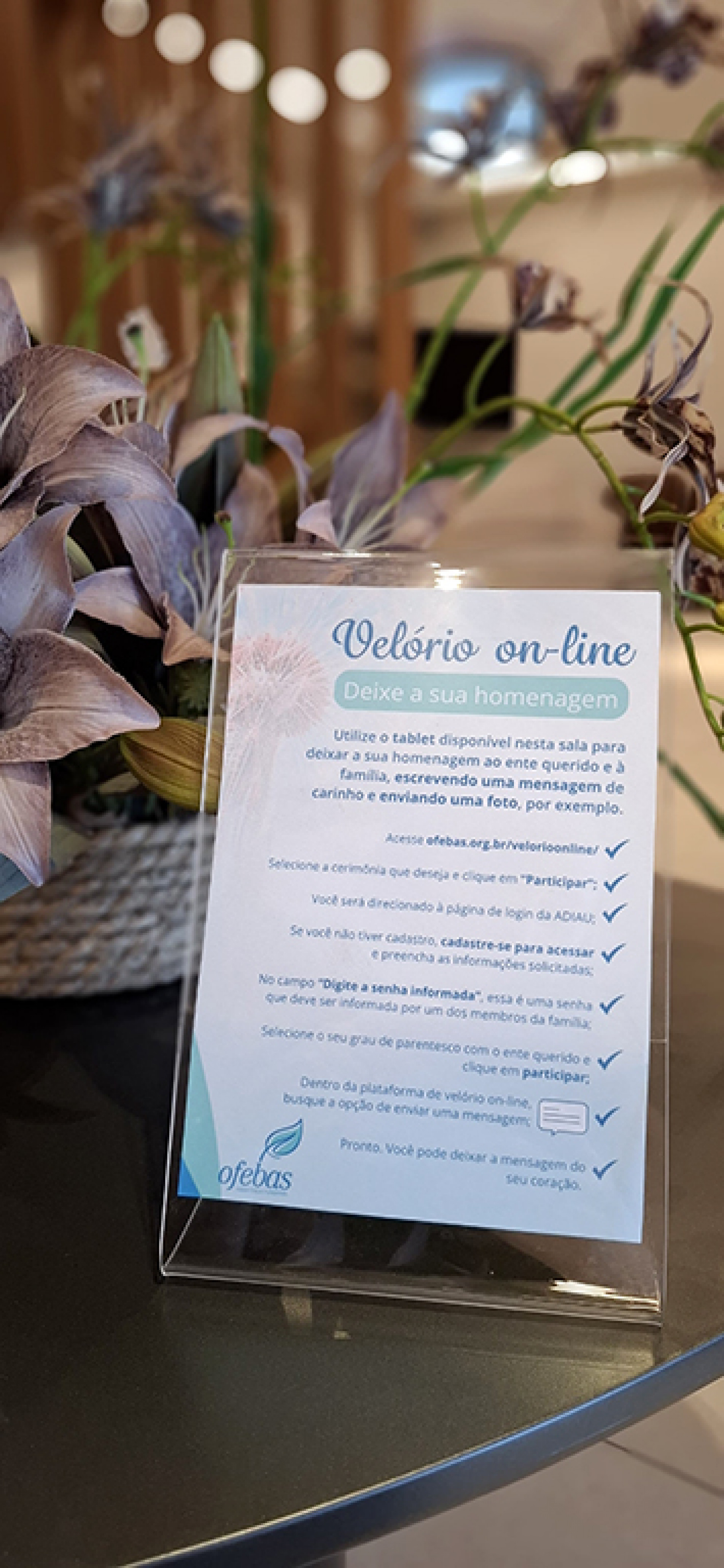O velório on-line e imersivo é um serviço da Ofebas oferecido tanto para associados que têm planos de assistência quanto para atendimento particular.