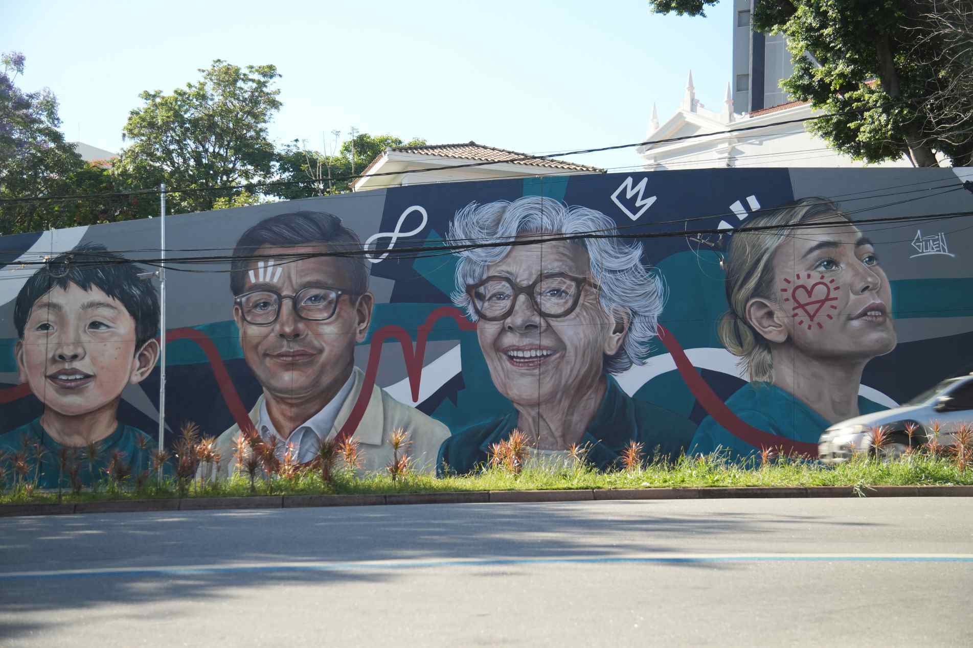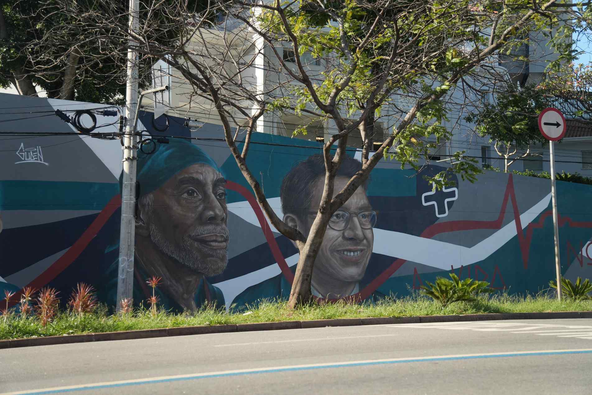 A obra, que se estende pelos 100 metros de comprimento do muro, é um tributo visual aos rostos que acolhem, curam e sustentam o dia a dia hospitalar — dos atendentes da recepção aos médicos, enfermeiros, técnicos e auxiliares. Com traços expressivos e cores suaves, o mural destaca retratos reais e humanizados, que representam a diversidade e a empatia presentes em cada gesto de cuidado.