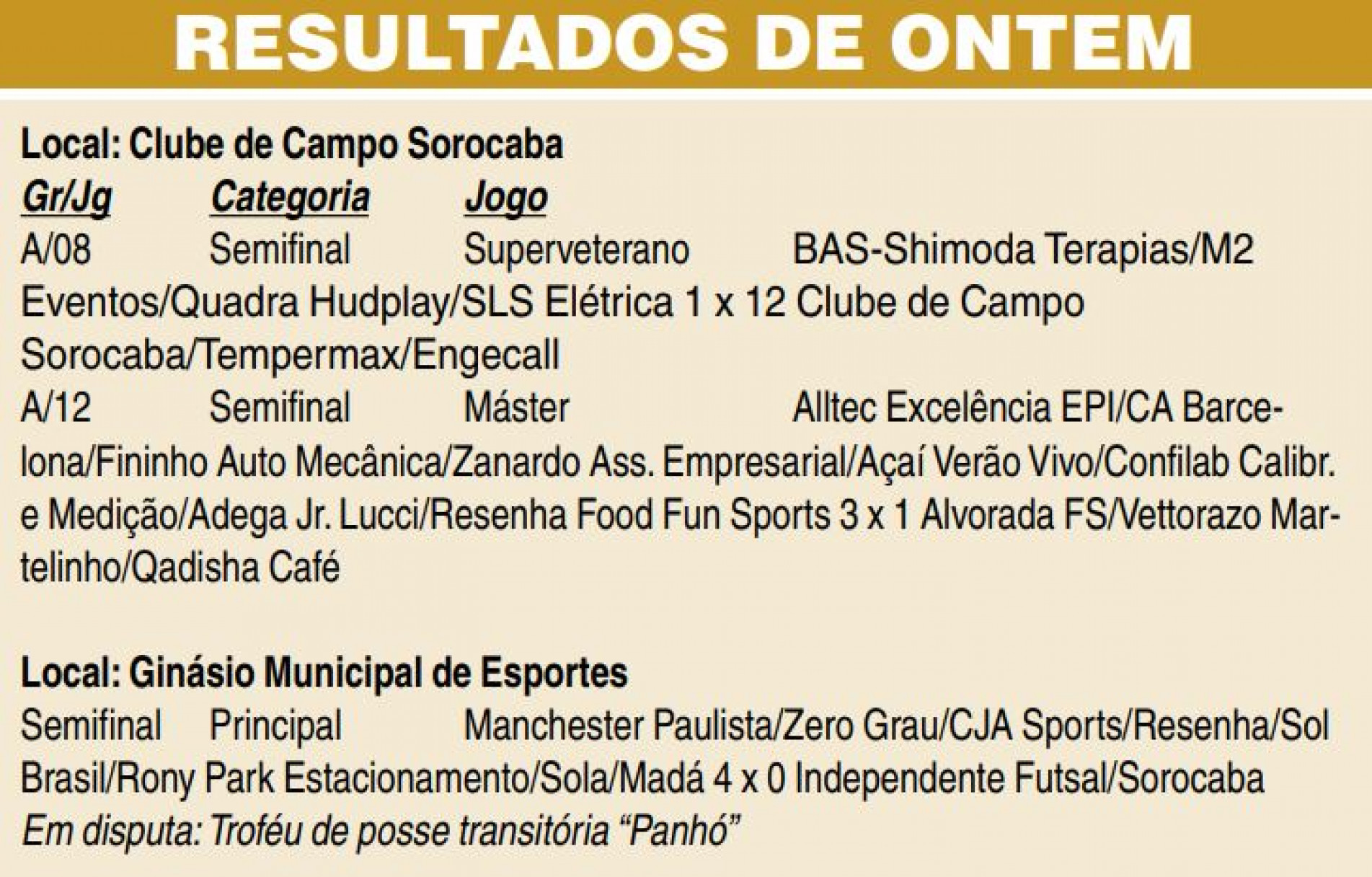 No Principal, o Manchester Paulista/Zero Grau eliminou ontem o Independente Futsal/Sorocaba ao vencer por 4 a 0 e tornou-se o primeiro finalista da categoria. O torneio é realizado pela Secretaria de Esporte e Qualidade de Vida (Sequav), com apoio da Fundação Ubaldino do Amaral (FUA). (Da Redação)