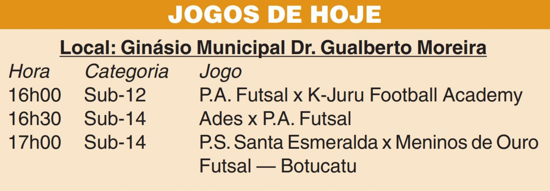 A terceira semana do 42º Torneio Aberto de Futsal para Crianças e Adolescentes, o Cruzeirinho 2022, terá 19 partidas. A bola rola hoje (24) em três jogos no Ginásio Municipal Dr. Gualberto Moreira. Amanhã (25) haverá oito confrontos no ginásio do Lar Escola Monteiro Lobato e mais oito no GME.
