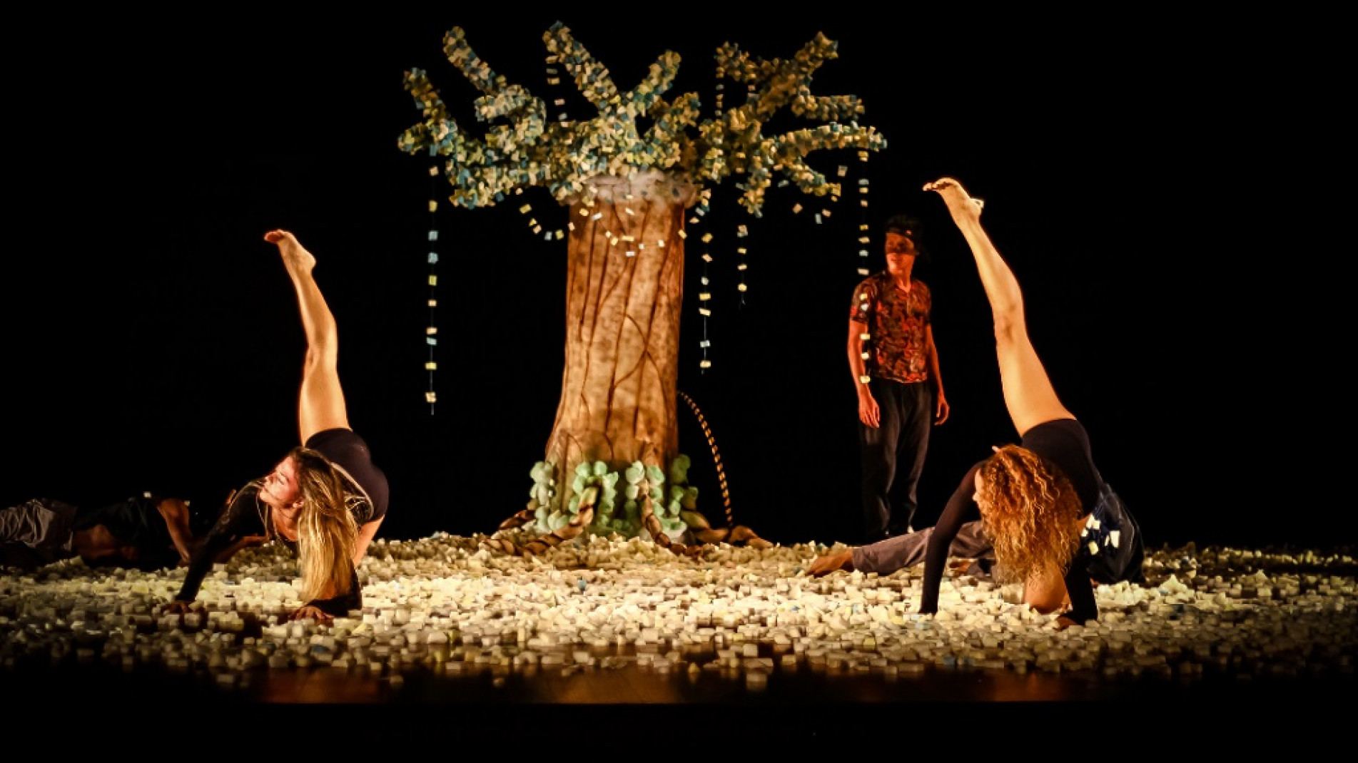 No palco, os artistas retratam lendas e mitos do folclore brasileiro