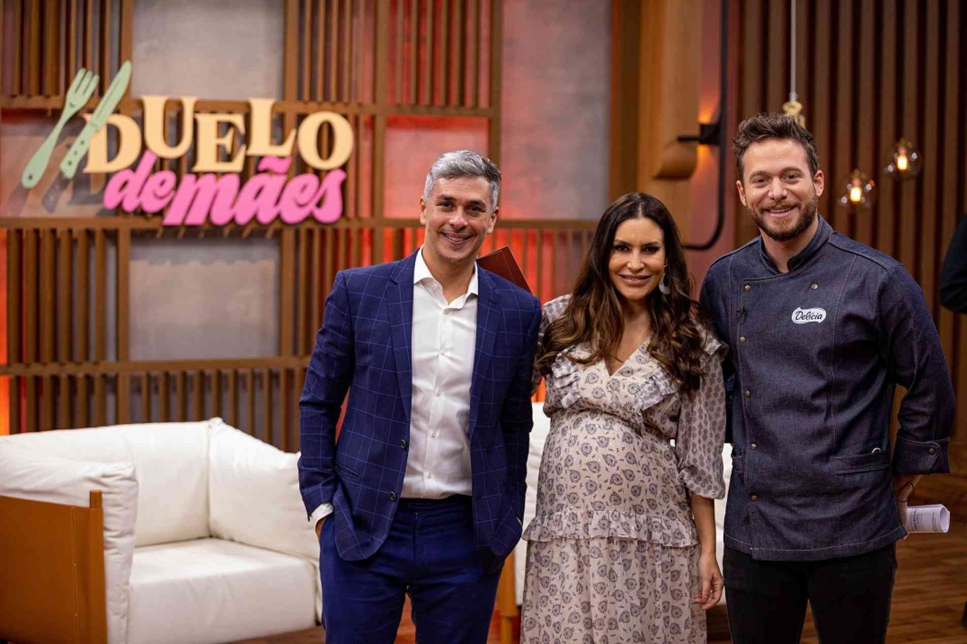 Ivan Moré é um dos convidados do “Duelo de Mães” deste sábado, às 20h25, na Band. O jornalista convoca a mãe, dona Zilda, para uma disputa gastronômica com Helena, mãe do humorista Eros Prado. Na foto: Ivan Moré, Ticiana Villas Boas e o chef Dalton Rangel.