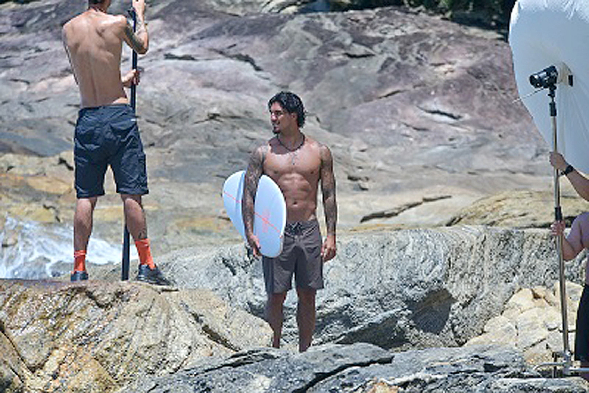 Em rápida passagem pelo Brasil, num intervalo das suas competições, Gabriel Medina está gravando a campanha da marca de bronzeadores da qual ele é o embaixador. Trabalho foi realizado na praia de Santiago, região de Maresias.