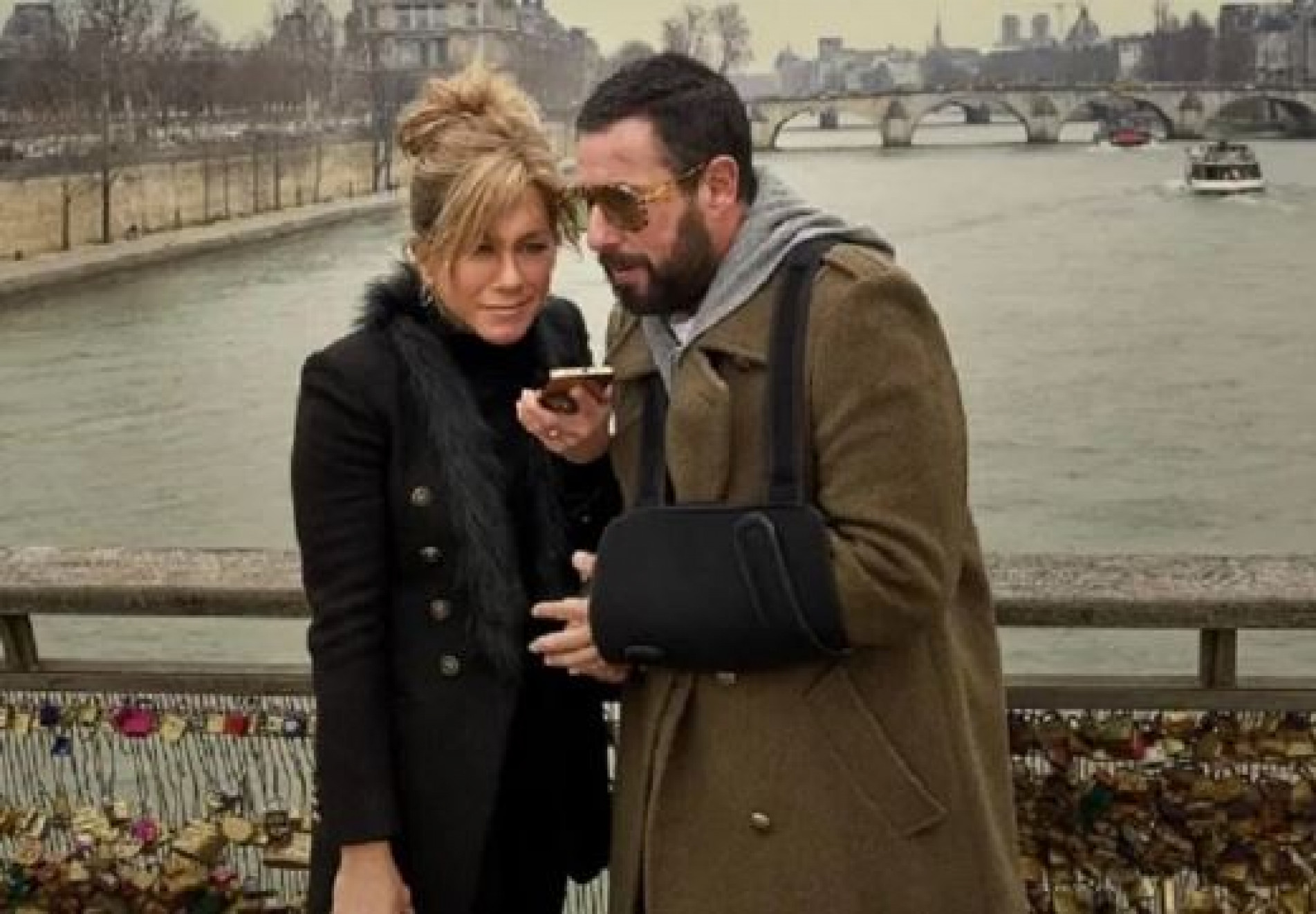 Aos 56 anos, Sandler repete a parceria com Jennifer Aniston na sequência do filme Mistério no Mediterrâneo