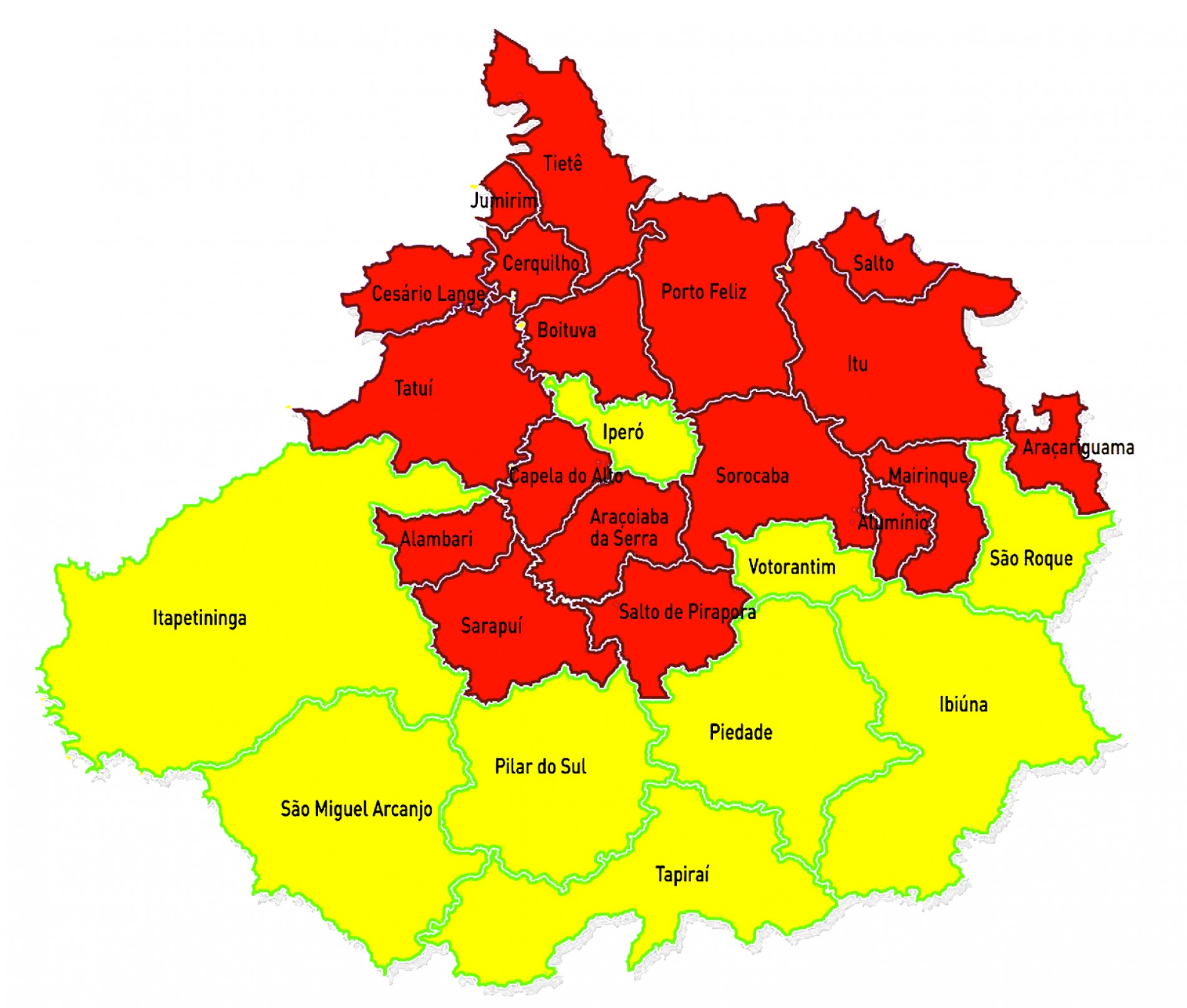 Segundo o relatório, a crise é severa em Alambari, Alumínio, Araçariguama, Araçoiaba da Serra, Boituva, Capela do Alto, Cerquilho, Cesário Lange, Itu, Jumirim, Mairinque, Porto Feliz, Salto, Salto de Pirapora, Sarapuí, Sorocaba, Tatuí e Tietê. Em Ibiúna, Iperó, Itapetininga, Piedade, Pilar do Sul, São Miguel Arcanjo, São Roque, Tapiraí e Votorantim, o cenário é moderado.