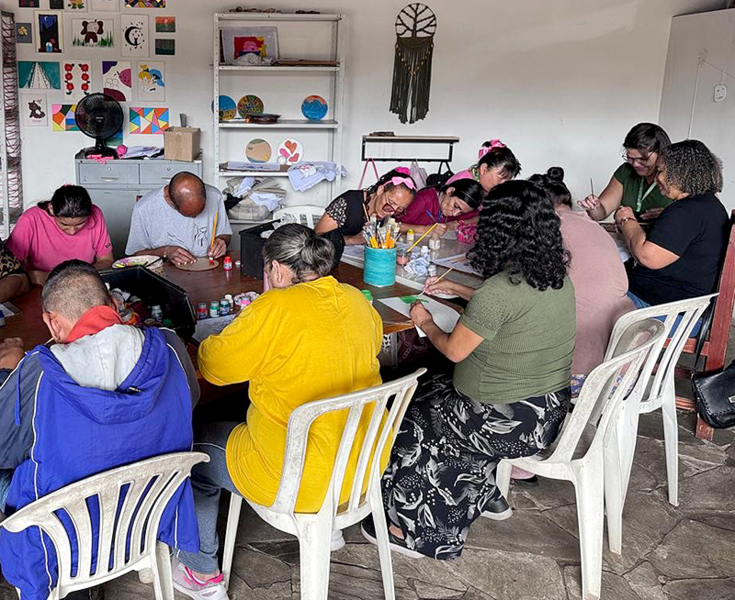 Todas as terças e quartas-feiras, os pacientes do Centro de Apoio Psicossocial (Caps) “Alegria de Viver”, localizado no Jardim Refúgio, região sul de Sorocaba, se reúnem na área externa do imóvel, próximo ao jardim, para a produção de arte. Na ocasião, eles realizam pinturas em telas, guardanapos, placas de MDF e em folhas canson. A prática, conhecida como arteterapia, auxilia no tratamento de transtornos mentais graves e persistentes.