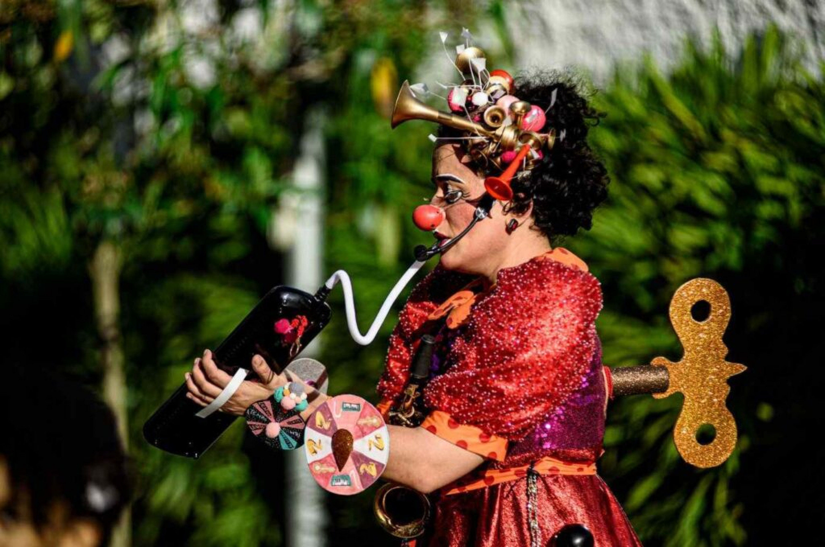 Além das oficinas e vivências, o Circuito Sesc de Artes 2025 traz apresentações para a praça Padre Miguel. Na peça A Caixinha de Música da Purezempla, uma palhaça mineira, mas radicada em São Paulo, se parece com uma caixinha de música ambulante: toca ukulele, escaleta e saxofone. Contudo, quem escolhe o som são os participantes, por meio de uma roleta.