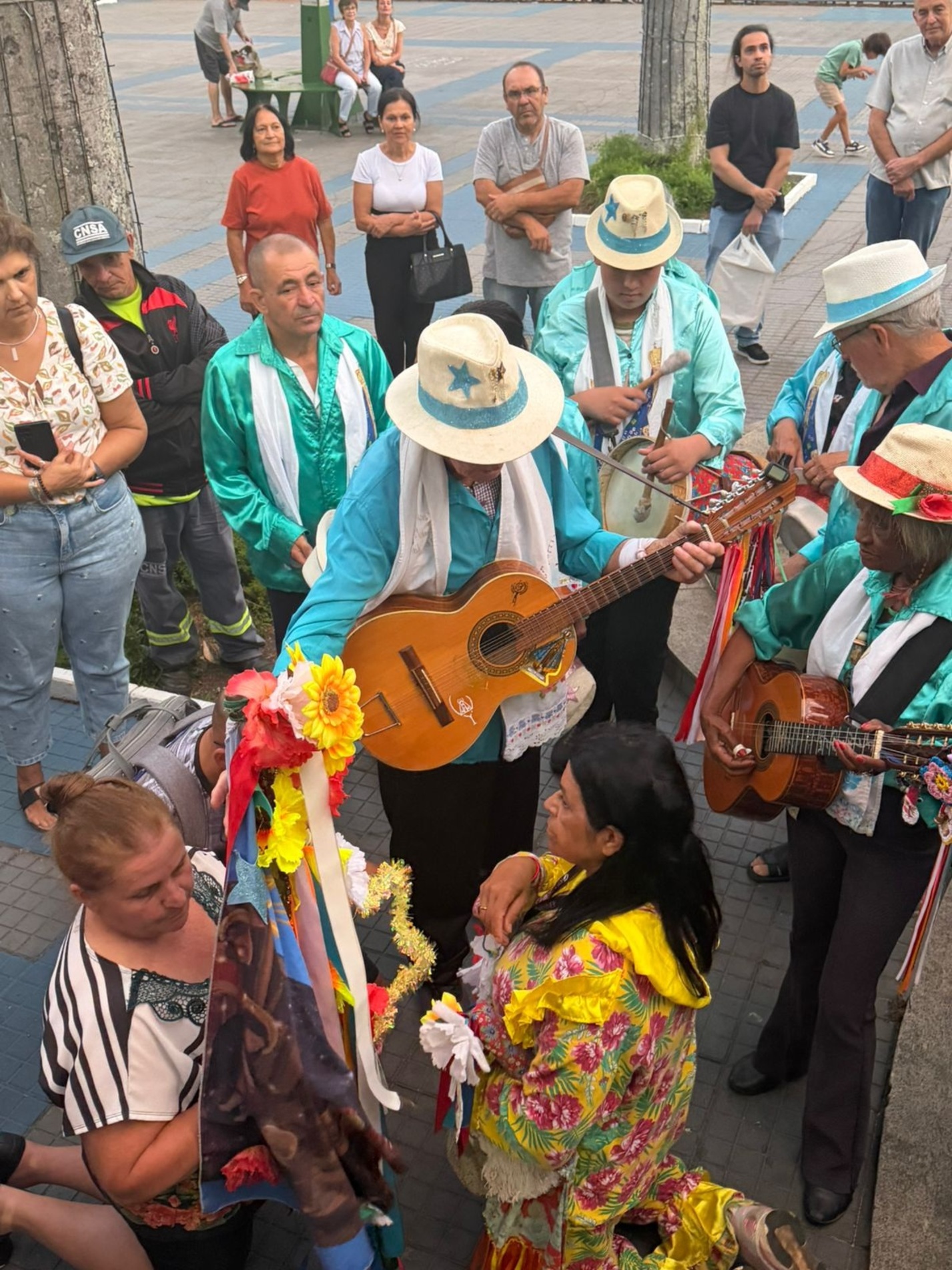Os músicos lembraram companheiros que já não estão presentes. Parte do público, formada por pessoas vindas do Norte e do Nordeste, comentava em voz baixa sobre a terra natal e sobre como a folia marcou suas histórias. Quando o cortejo passa, não deixa apenas música no ar, mas a sensação de que o sagrado ainda caminha entre as pessoas, de porta em porta, pedindo licença para entrar.
