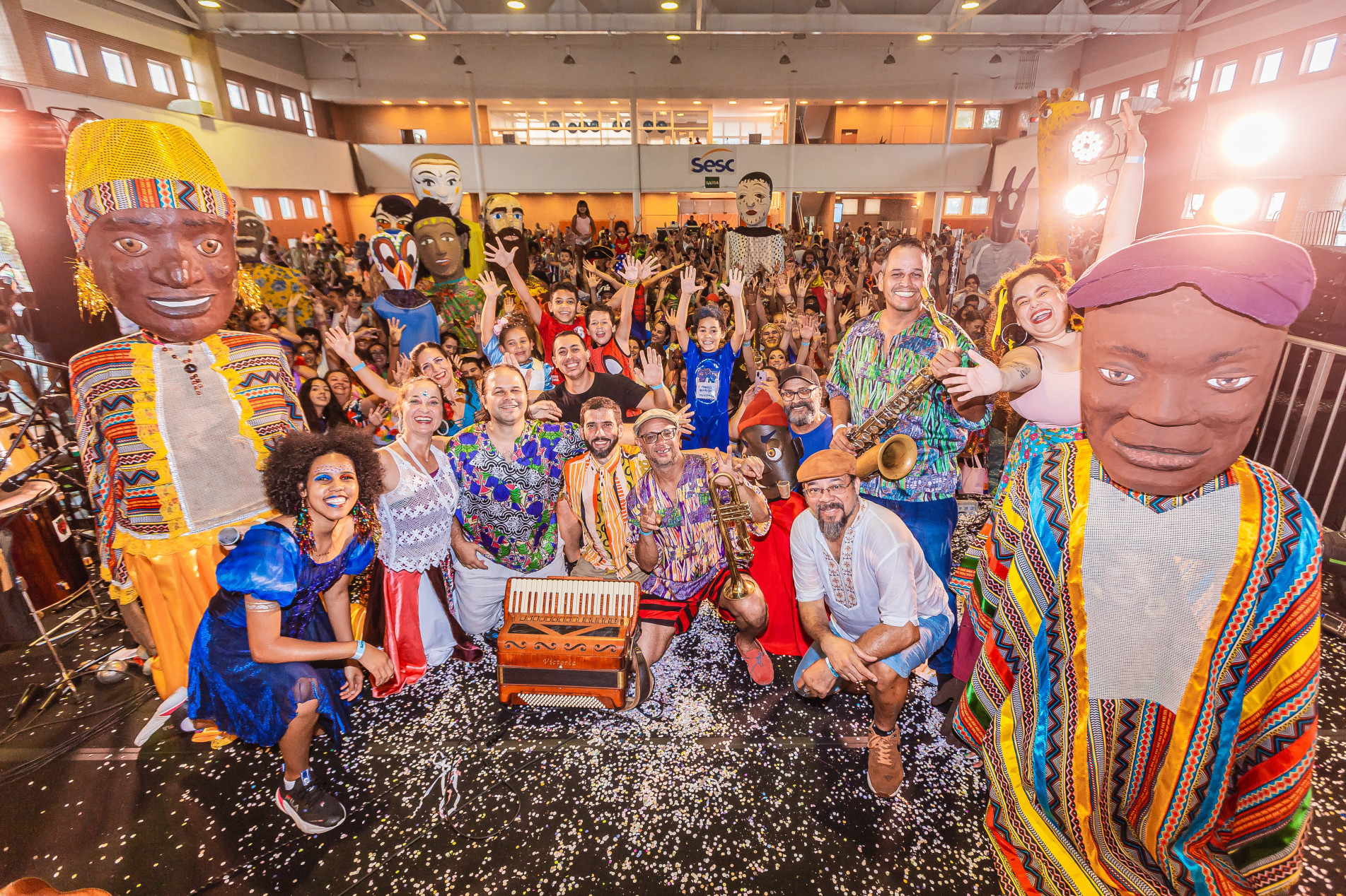 O encerramento acontece na terça-feira (17). Às 14h, um novo cortejo com bonecões e músicos percorre a unidade. Às 16h, o Bloco Tempo de Brincar conduz a matinê com canções autorais e ritmos brasileiros, como frevo, maracatu e marchinhas. Em 2026, o bloco homenageia Nego Bispo com a canção “Nome pro Nome”. Classificação livre.