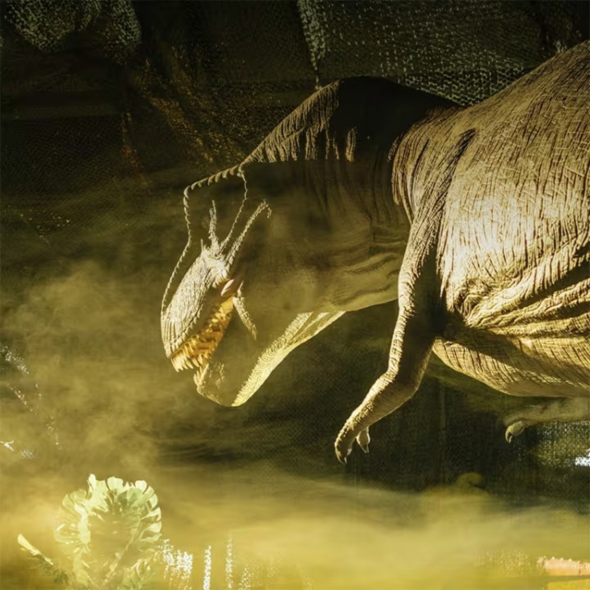 O público percorre um espaço temático que recria o ambiente do período Jurássico e apresenta espécies como T-Rex, Estegossauro, Anquilossauro e Velociraptor. As estruturas robotizadas se movimentam e compõem o cenário que simula o habitat das criaturas que habitaram a Terra há milhões de anos.