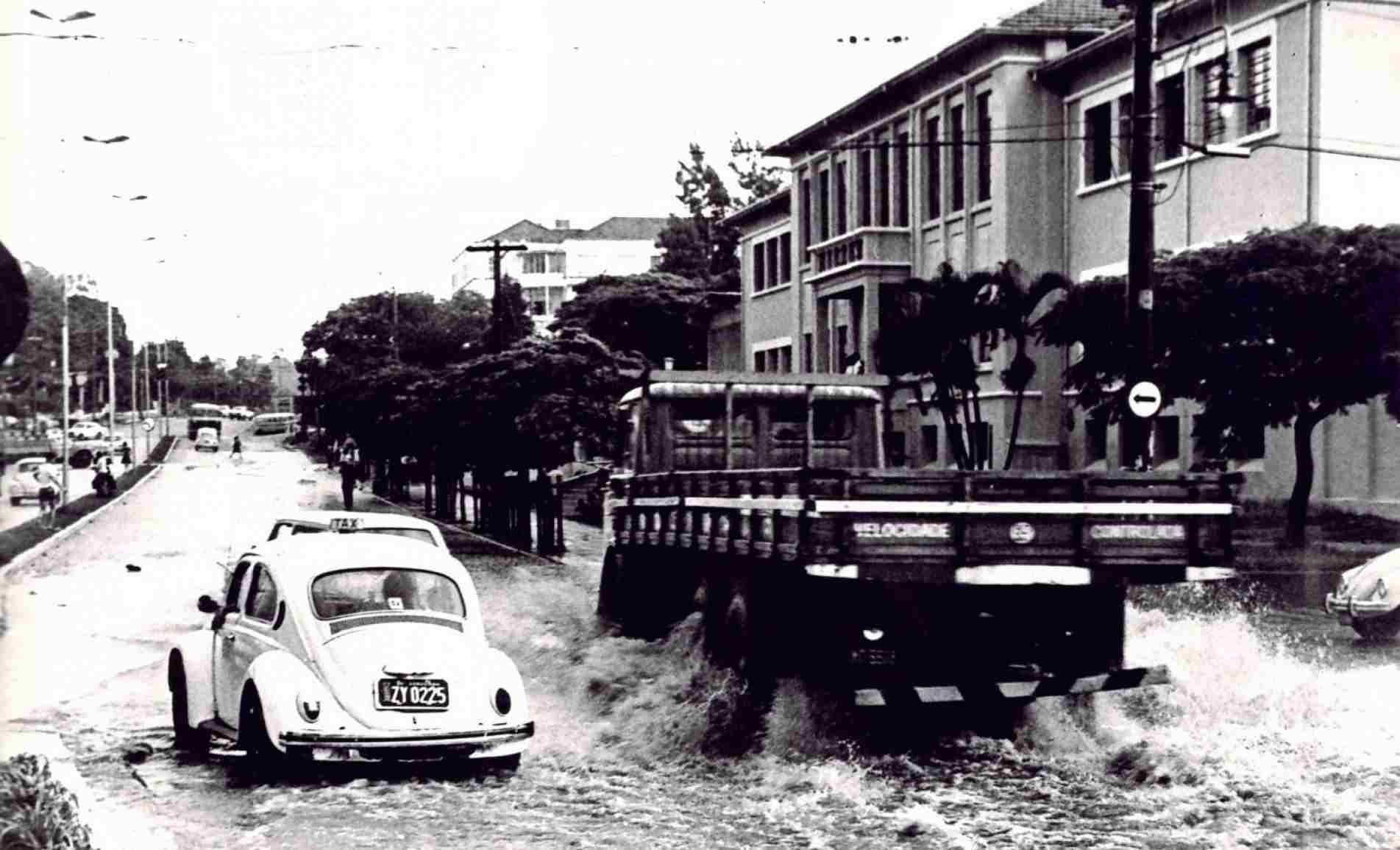 Você está com saudade de uma chuva? Você sabia que quando chove, a água rega as plantações e, ao penetrar no solo, vai escorrendo até as nascentes e os rios e lagos, onde pode ser utilizada para diversos fins? Outro benefício da chuva é que ela promove uma limpeza no ar, fazendo assentar a poeira e outras impurezas. A chuva costuma causar também, principalmente em grandes cidades, enchente, alagamento e inundação. Mas você sabe qual a diferença entre elas? Enchentes ou cheias ocorrem quando há a elevação do nível de água no canal de drenagem do rio, pelo aumento da vazão, atingindo a cota máxima do canal. Ou seja, é quando o curso hídrico (rio ou córrego, por exemplo) alcança o seu limite de água, porém sem que haja um extravasamento em suas margens. No entanto, as enchentes no Brasil são comumente entendidas como circunstâncias de elevação do nível dos rios que causam algum tipo de impacto social, como no caso das inundações e dos alagamentos. Nos períodos chuvosos, é comum ouvir nos noticiários relatos de chuvas que ocasionaram enchentes, inundações e alagamentos, levando a crer, erroneamente, que esses termos têm igual definição. As enchentes são processos naturais que ocorrem regularmente nos períodos de maior volume de chuvas. A água ocupa a capacidade máxima do canal do rio, sem que extravase as margens. Quando a água transborda para as áreas das margens do rio, ocorre a inundação. É nesse evento que a água alcança a planície de inundação e causa complicações às populações próximas. Em função do clima tropical brasileiro, a ocorrência de precipitações volumosas é comum no período chuvoso, o que torna recorrente a situação. Já o alagamento, nem sempre está relacionado ao curso d’água, ocorre quando há o acúmulo de água temporário em uma área que tem sua capacidade de infiltração ou drenagem da água reduzida ou limitada. Comum no período chuvoso nas metrópoles brasileiras como Sorocaba. A coluna de hoje preparou um #TBT sobre algumas chuvas que já aconteceram em nossa cidade.