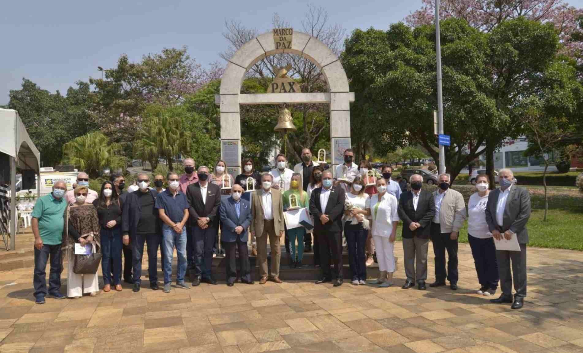 Idealizado pelo italiano Gaetano Brancati Luigi, o Marco da Paz está presente em diversos locais do País e do mundo, com o objetivo de disseminar a cultura da paz entre os povos. Assessor especial da presidência da Associação Comercial de São Paulo (ACSP), Luigi viveu, ainda criança, todas as dificuldades e dores da 2ª Guerra Mundial. Em sua fala, ele, que já foi indicado três vezes ao Prêmio Nobel da Paz pela criação do monumento, destacou a mensagem da necessidade de se manter o espírito da paz entre os povos. O primeiro Marco da Paz foi implantado em 2000, no Pátio do Colégio, em São Paulo (SP).