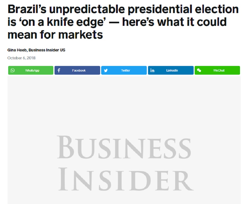 O portal Business Insider, da Cingapura, publicou um artigo em que analistas dizem que nenhum dos candidatos à Presidência "serão boa notícia para os mercados".
