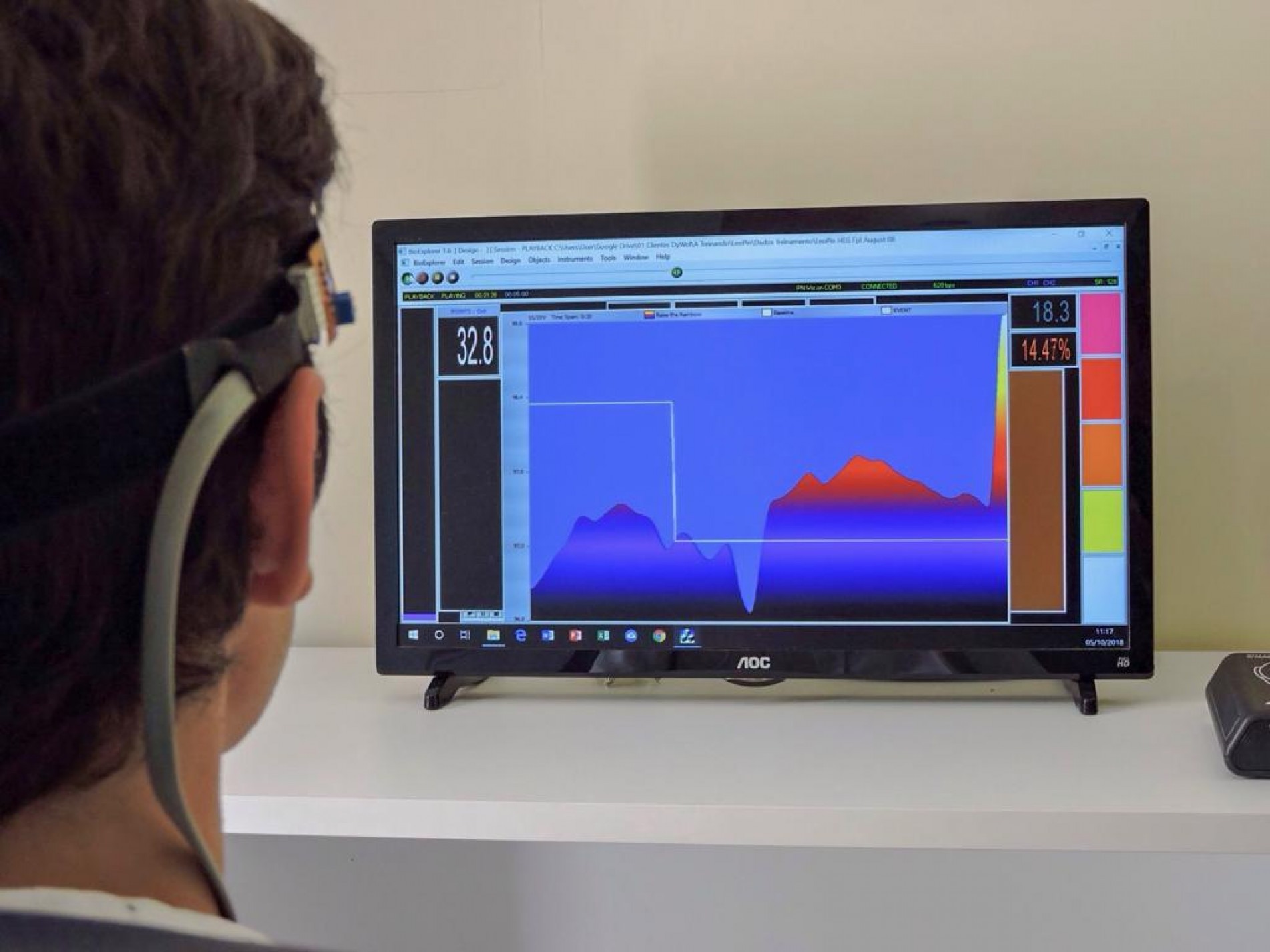 O treinamento com neurofeedback é feito com ajuda de um aparelho que possibilita fazer uma leitura do funcionamento do cérebro em tempo real. “É como se fosse um espelho na tela do computador, que vai retroalimentar o que está acontecendo no cérebro da pessoa. Por exemplo, no caso de alguém com dificuldade de atenção, é possível observar nessa leitura quais são as áreas do cérebro que precisam ser treinadas para que ela consiga ficar mais tempo atenta”, detalha Wolff.