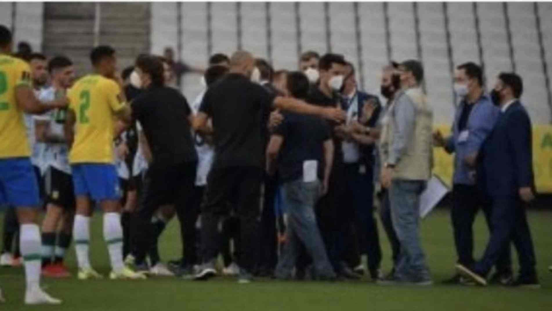 Aos cinco minutos do primeiro tempo, agentes da Anvisa e da Polícia Federal entraram em campo para parar o jogo em razão da presença de quatro atletas argentinos (três deles titulares), que não cumpriram as regras sanitárias em território brasileiro e, por isso, não poderiam jogar.