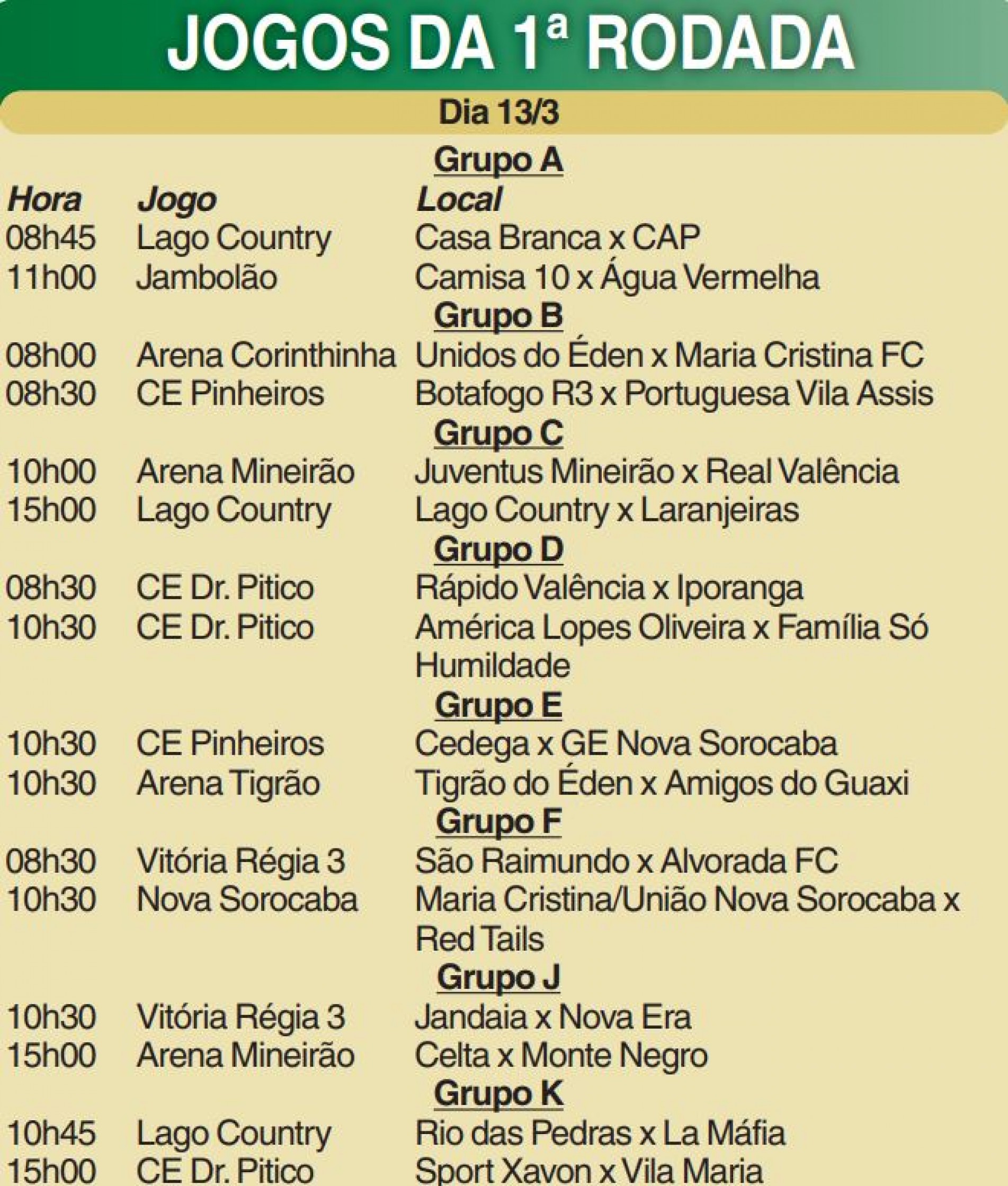 Confira a tabela completa e o regulamento em: https://esporte.sorocaba.sp.gov.br/campeonatos/taca-baltazar-fernandes/. (Da Redação)