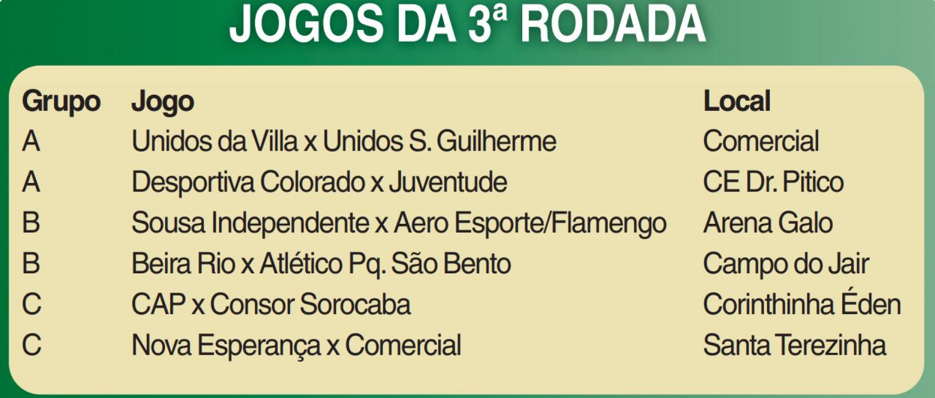 Seis jogos abrem a 3ª rodada do Veterano da 2ª Divisão