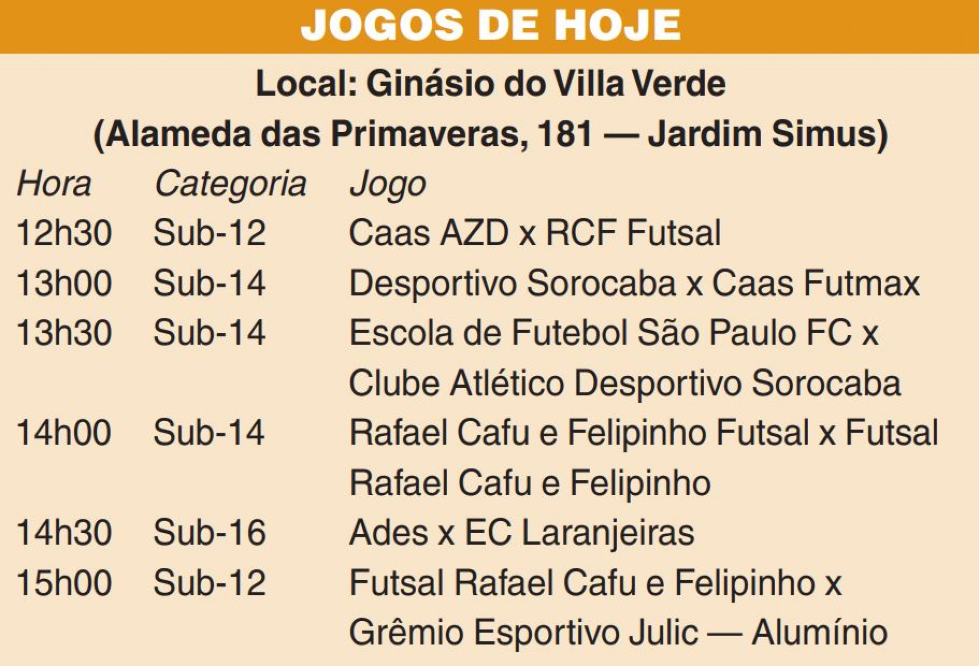 O 42º Torneio Aberto de Futsal para Crianças e Adolescentes, o Cruzeirinho 2022, terá 24 partidas neste fim de semana, sendo sete hoje (17) e outras 18 amanhã (18). Os jogos ocorrerão no Ginásio do Villa Verde (Jardim Simus), no Ginásio do Éden e no Ginásio Municipal Dr. Gualberto Moreira.