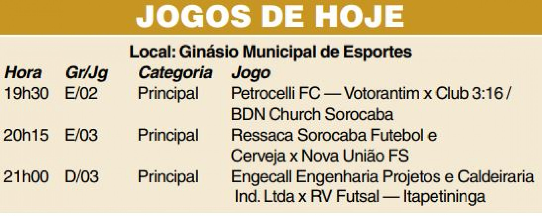 Ao todo, nesta primeira semana, serão realizados 12 jogos, até amanhã (30), todos pela categoria Principal. Na noite de hoje (28), no Ginásio Municipal de Esportes (GME), mais seis equipes estreiam, a partir das 19h30. (Da Redação)