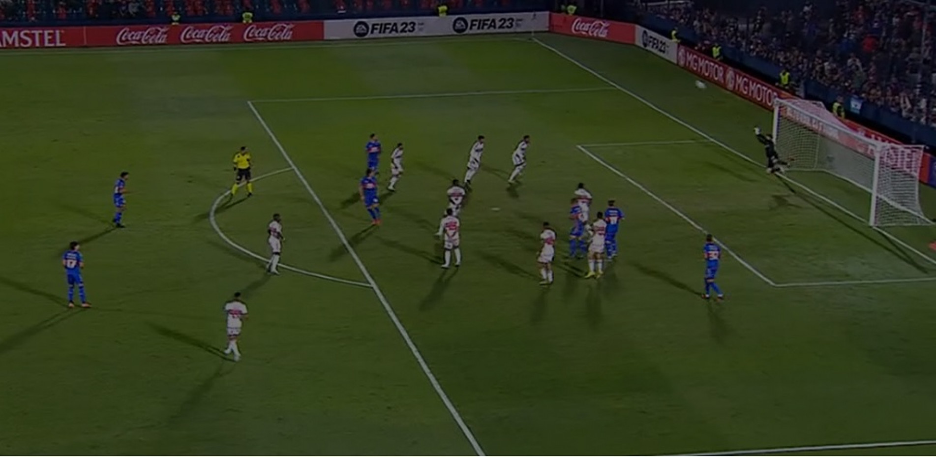 A chance seguinte foi fatal. Em contra-ataque iniciado com uma roubada de bola de Arboleda, Nestor deu belo passe para Erison, que penetrou em velocidade e chutou na saída de Martinelli para marcar.