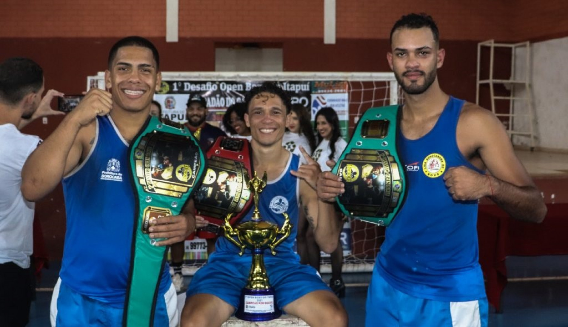 Os boxeadores Luiz Carvalho (92 kg), Leandro Coelho (67 kg) e Haron Martins (75 kg) -- foto, da Liga Sorocabana de Boxe (Lisoboxe), venceram no último sábado (27) o Desafio Open Boxe e trouxeram os cinturões para Sorocaba. Os combates ocorreram no Ginásio de Esportes Antônio Fadini, em Itapuí. Luiz Carvalho venceu o dérbi sorocabano contra David Guiedes, enquanto Leandro Coelho e Haron Martins superaram dois rio-clarenses: Ricardo Jurio e Eduardo Martins.