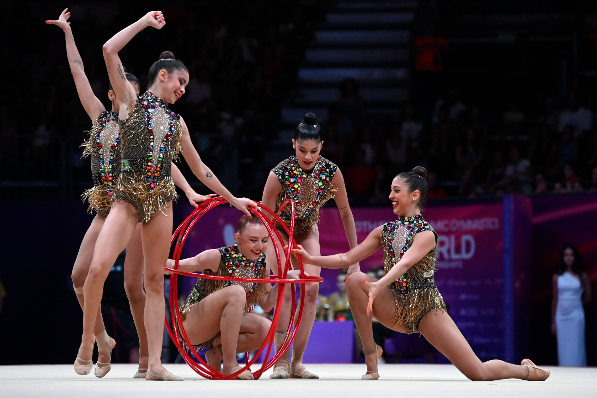 O conjunto brasileiro de ginástica rítmica garantiu, ontem (25), a vaga nos Jogos Olímpicos de Paris-2024. Bárbara Galvão, Déborah Medrado, Duda Arakaki, Giovanna Silva, Nicole Pírcio e Sofia Madeira receberam nota 65.000 na soma das apresentações da prova mista e dos cinco arcos, durante a disputa geral do Mundial de Valência, na Espanha, e terminaram em sexto lugar.