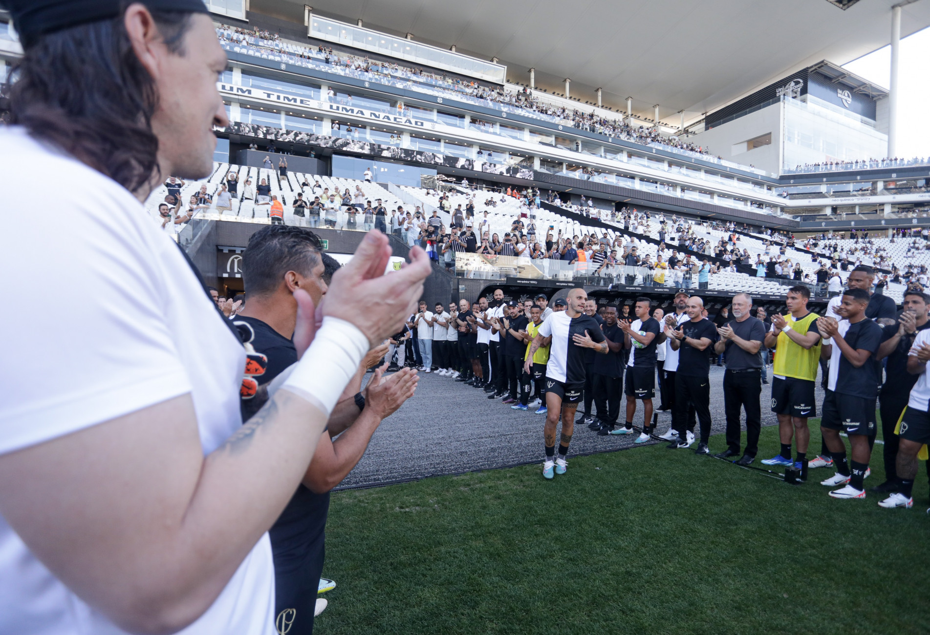 Antes de a bola rolar, Fábio Santos foi homenageado pelo Corinthians. O clube levou as taças conquistadas pelo jogador para o gramado e ele foi recebido pelo elenco, funcionários e seus familiares na despedida que antecedeu o aquecimento. Foram 375 jogos pelo clube, com os títulos do Campeonatos Brasileiros (2011 e 2015), da Libertadores (2012), do Mundial de Clubes (2012), do Campeonato Paulista (2013) e da Recopa Sul-Americana (2013).