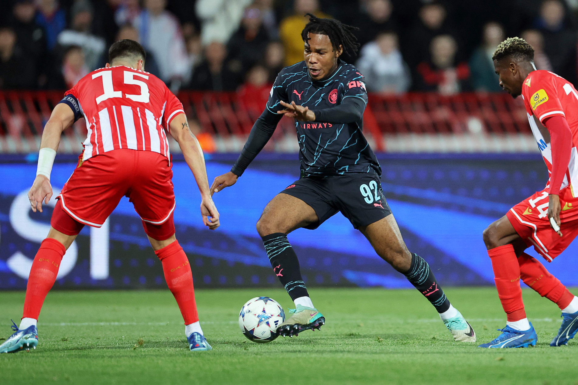Manchester City e Estrela Vermelha entraram em campo ontem (13) no Rajko Mitic Stadium, em Belgrado, na Sérvia, para um “amistoso” pela última rodada da fase de grupos da Liga dos Campeões. Os ingleses já estavam classificados às oitavas de final e os sérvios sem chance até de vaga na Liga Europa. Mesmo assim, a partida teve enorme importância para um jogador: Micah Hamilton. O garoto de 20 anos era gandula há seis anos e fez sua estreia no profissional ontem. E a alegria foi completa após anotar o gol que abriu caminho da vitória por 3 a 2 -- ainda sofreu um pênalti --, garantindo os 100% de aproveitamento da equipe de Pep Guardiola.