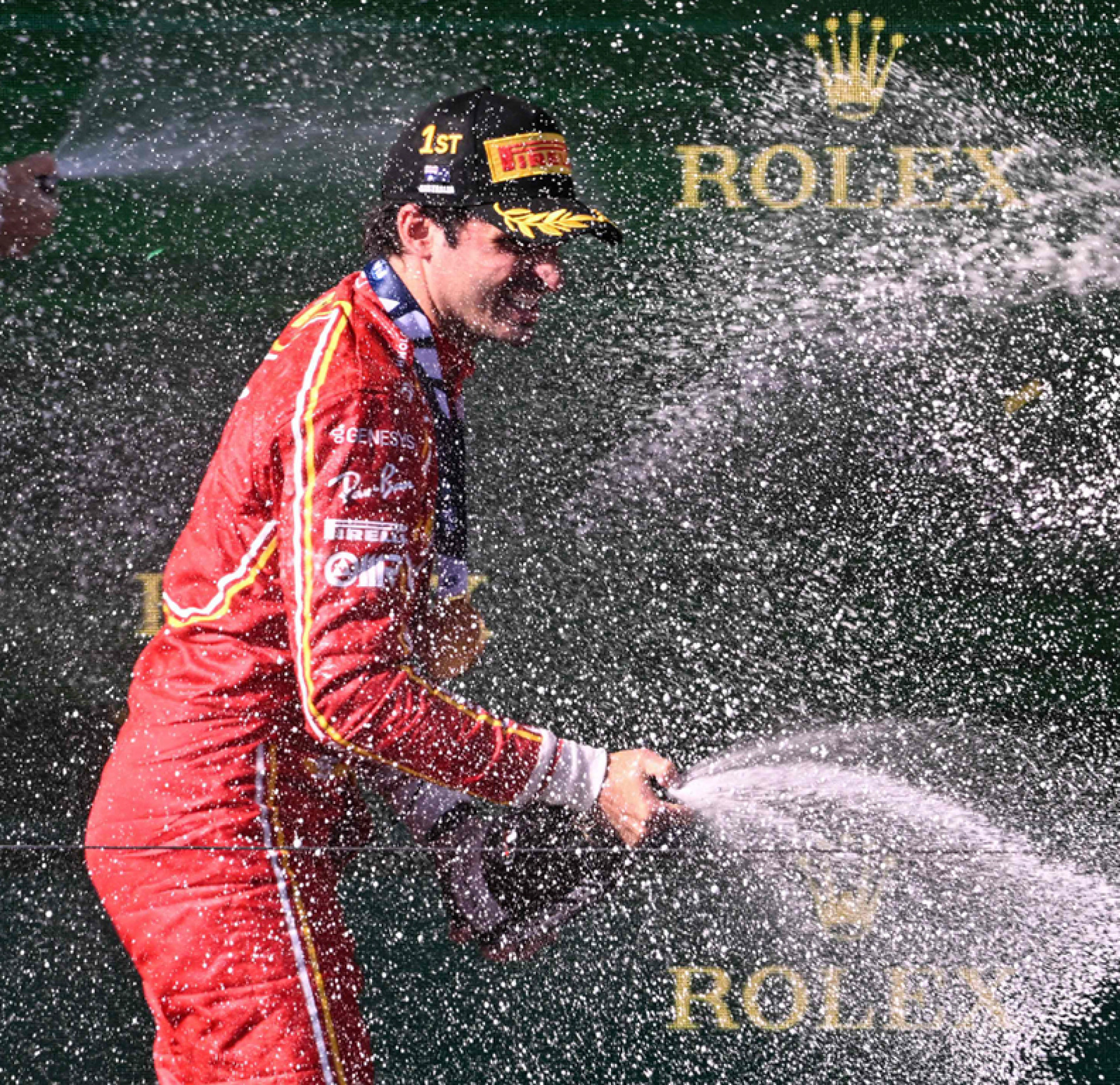 Em corrida emocionante, que contou com a desistência do campeão mundial, Max Verstappen, do britânico Lewis Hamilton e uma batida de George Russell, a Ferrari teve sua primeira vitória da temporada com dobradinha. O espanhol da Ferrari, Carlos Sainz, levou o Grande Prêmio da Austrália de Fórmula 1 na madrugada de domingo (24). O segundo e o terceiro lugar ficaram com Charles Leclerc, também da Ferrari, e Lando Norris, da McLaren. A próxima etapa da Fórmula 1 é o GP do Japão, no dia 7 de abril.