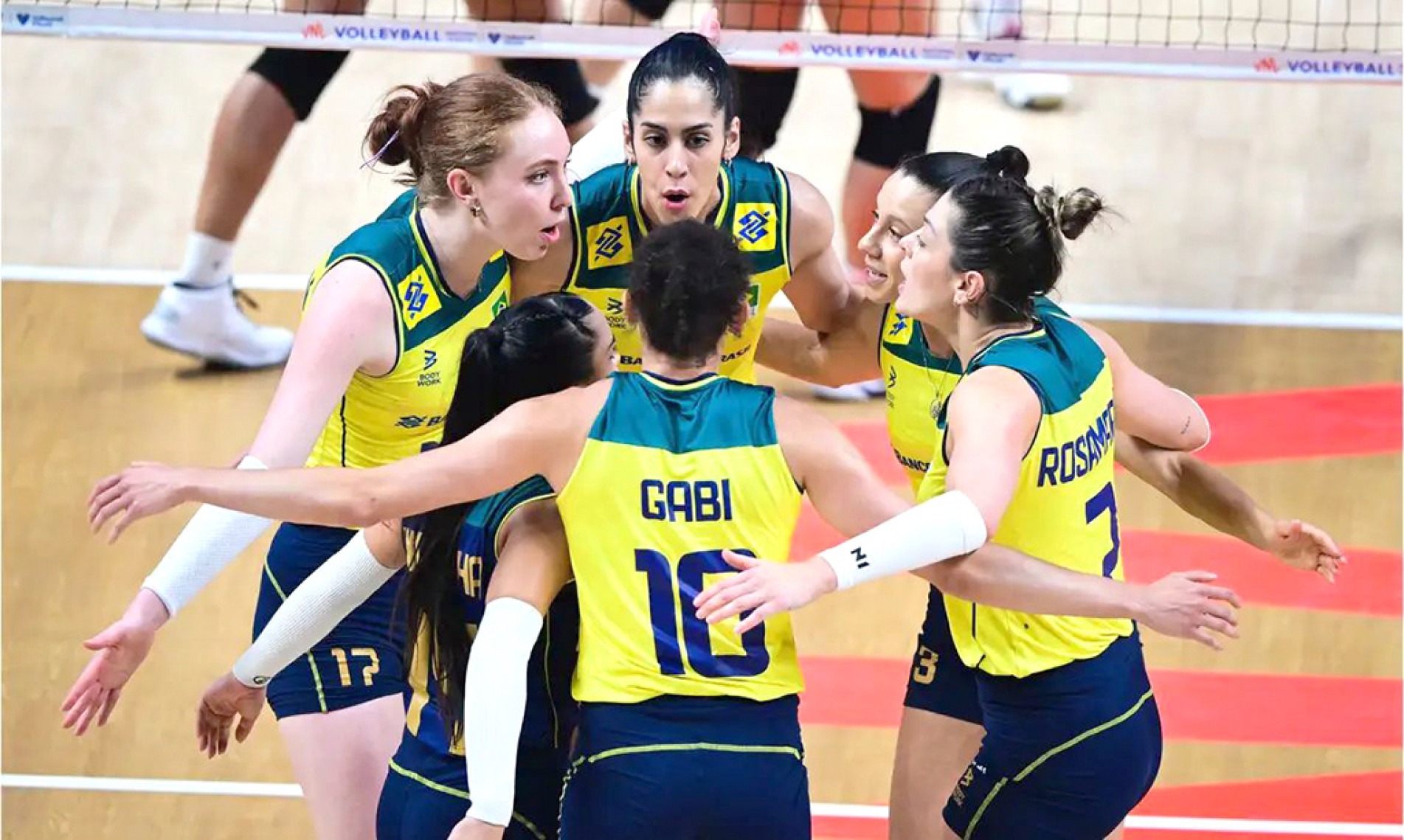 Com uma campanha impecável, o Brasil mira no título inédito na LNV, último grande torneio antes da Olimpíada de Paris. (Agência Brasil)