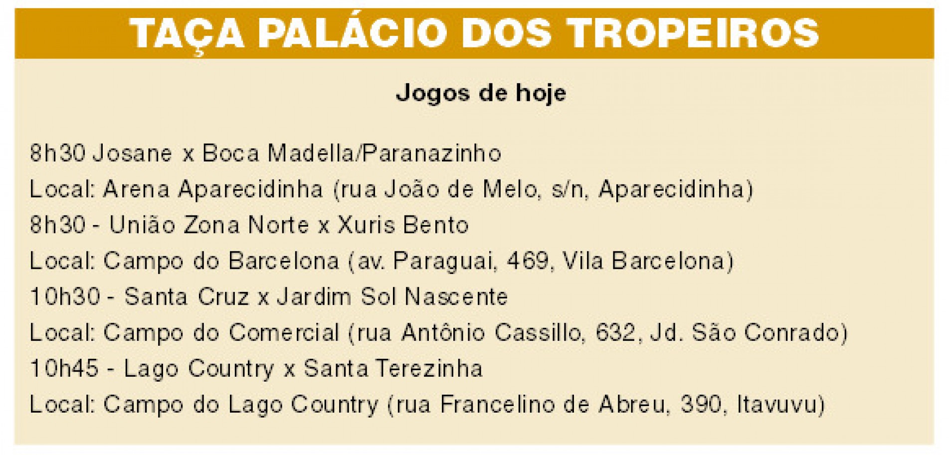 A Taça Palácio dos Tropeiros 2024 terá hoje (25) quatro jogos de volta válidos pelas quartas de final. Os vencedores desta etapa garantem o acesso para a Taça Cidade de Sorocaba 2025, além de classificação para a semifinal da competição.